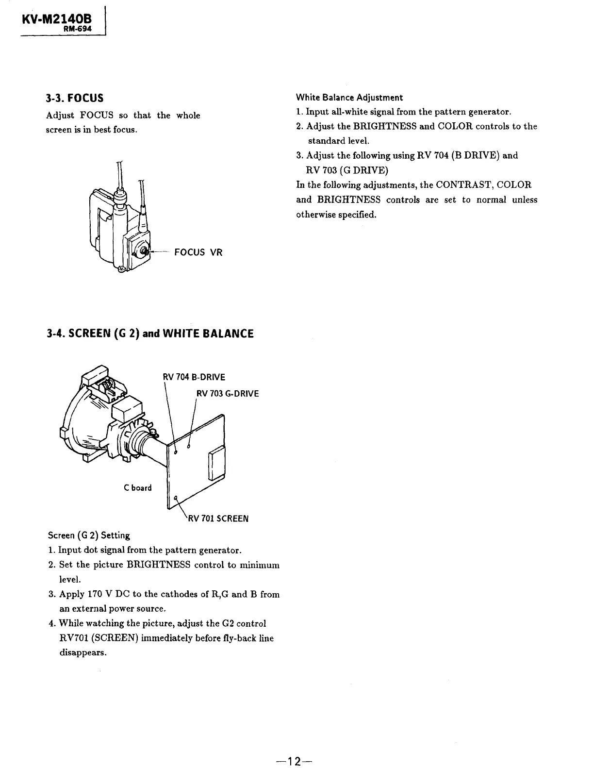 Sony TRINITRON KV-M2140B - 3-3. Focus; 3-4. Screen (G2) and White Balance