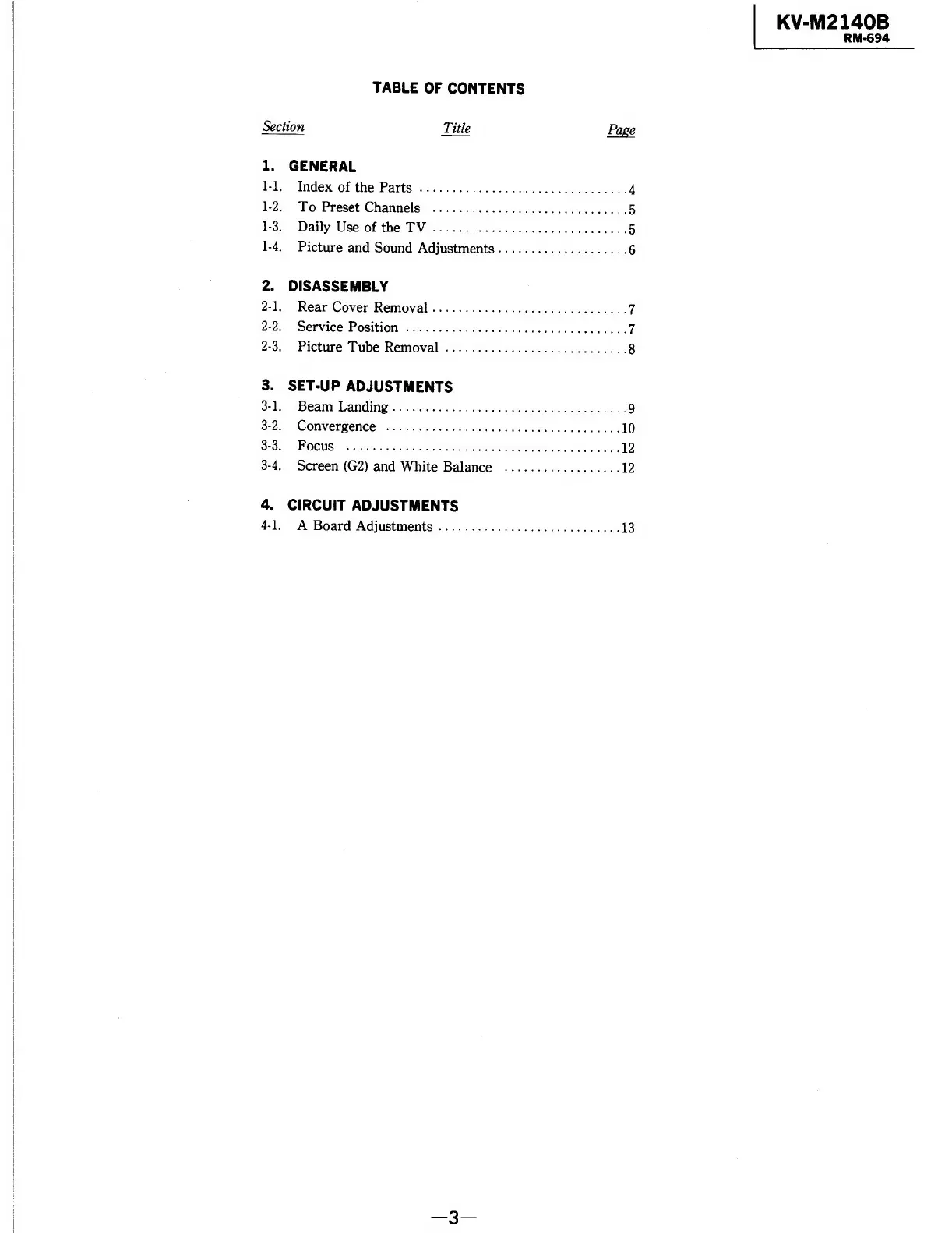 Sony TRINITRON KV-M2140B - | Kv-M2140 B; Default Chapter; Table of Contents