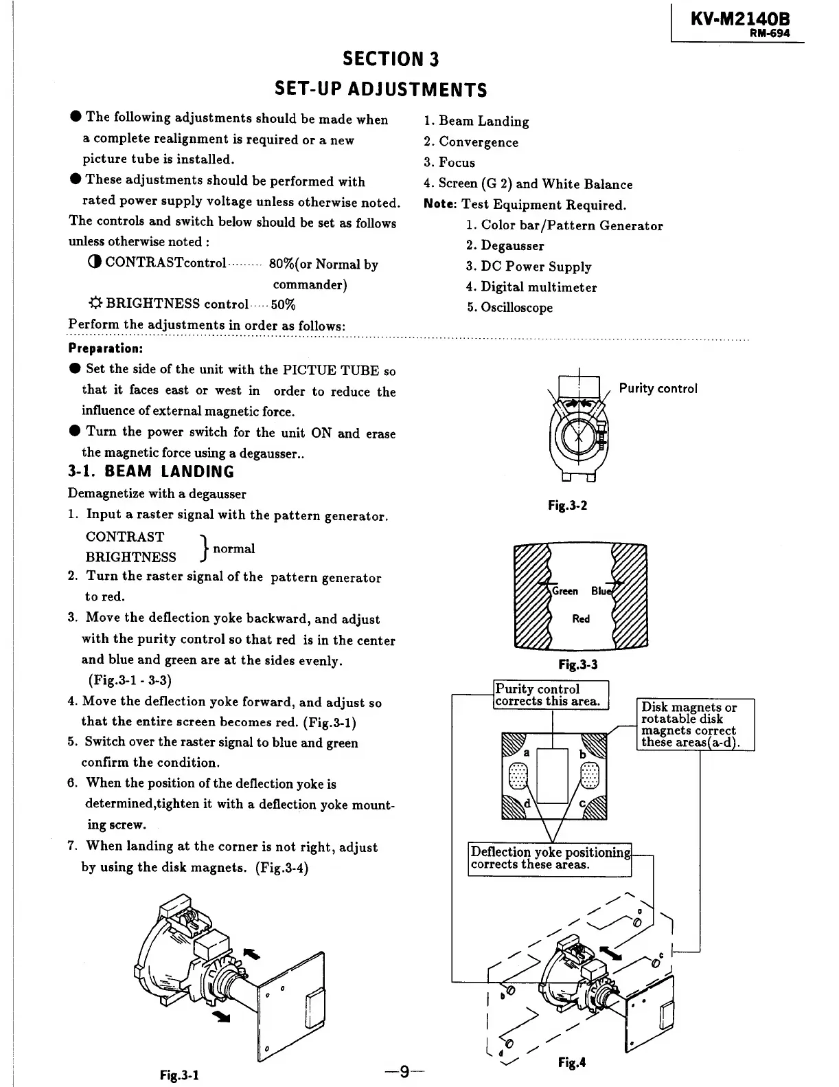 Sony TRINITRON KV-M2140B - Section 3 Set-Up Adjustments; 3-1. Beam Landing