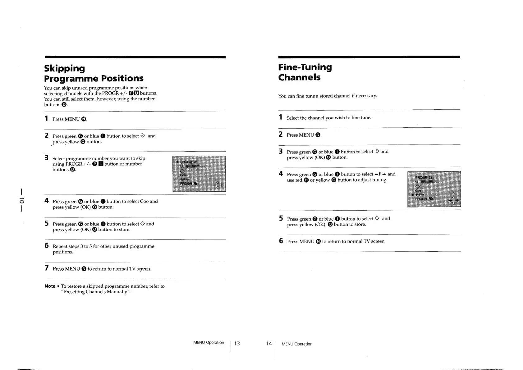 Sony TRINITRON KV-M2170A - Programme Position Management; Skipping Unused Positions; Channel Fine-Tuning