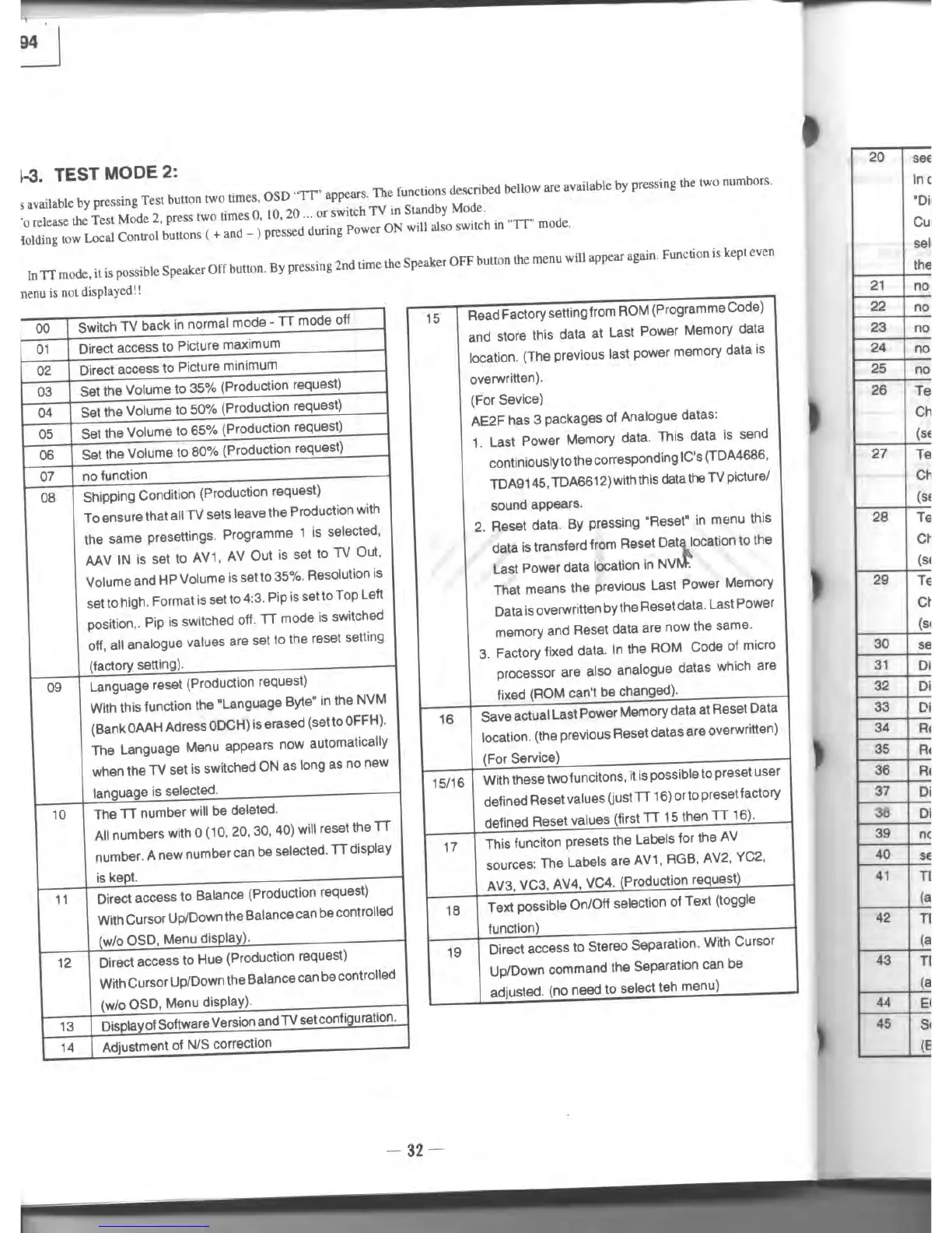 Sony Trinitron KV-S2941A - Test Mode