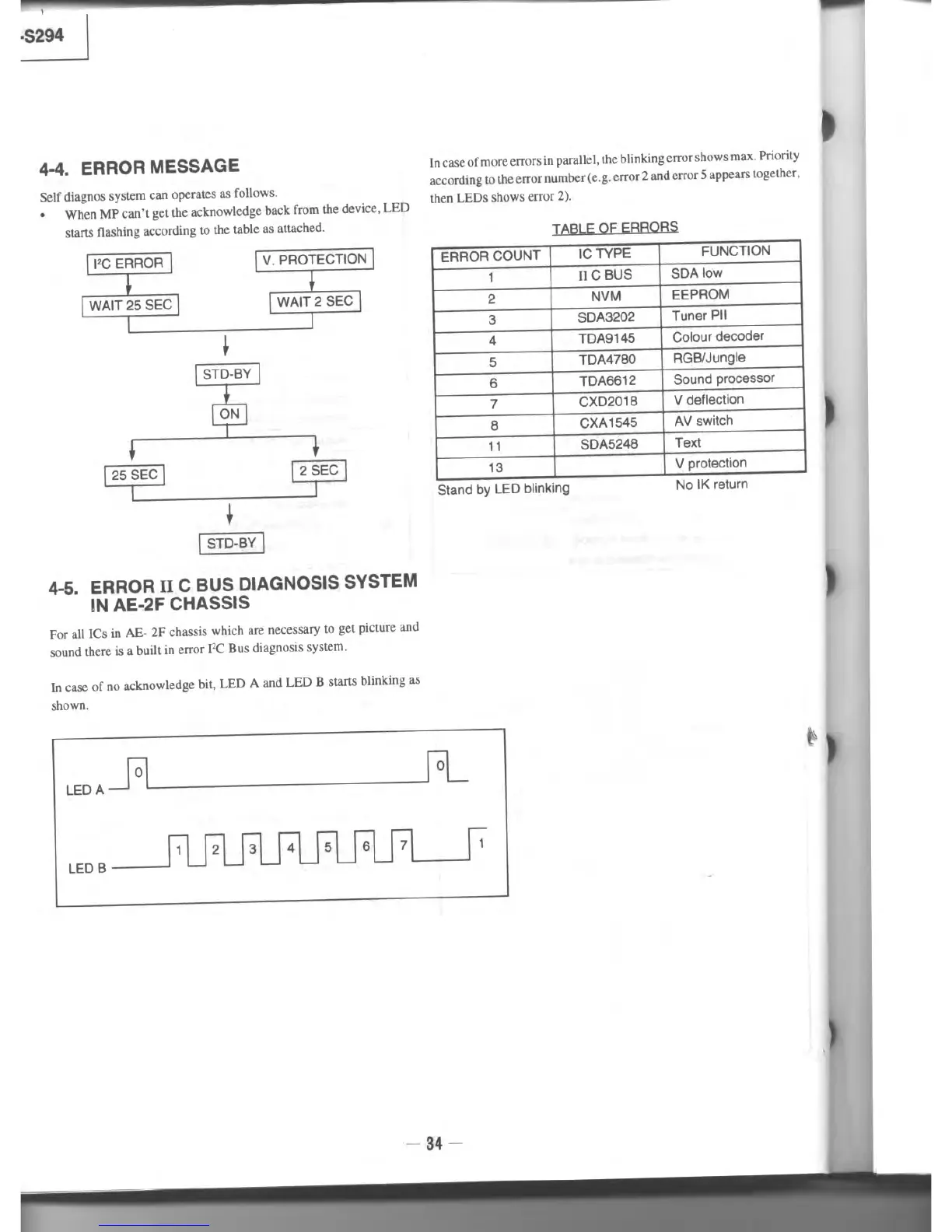 Sony Trinitron KV-S2941A - Error Message; Bus Diagnosis System; Table of Errors