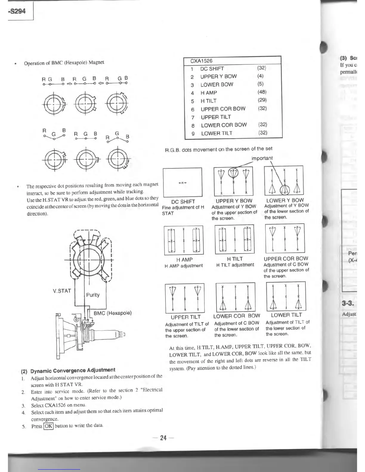 Sony Trinitron KV-S2941A - Dynamic Convergence Adjustment; Operation of BMC Magnet