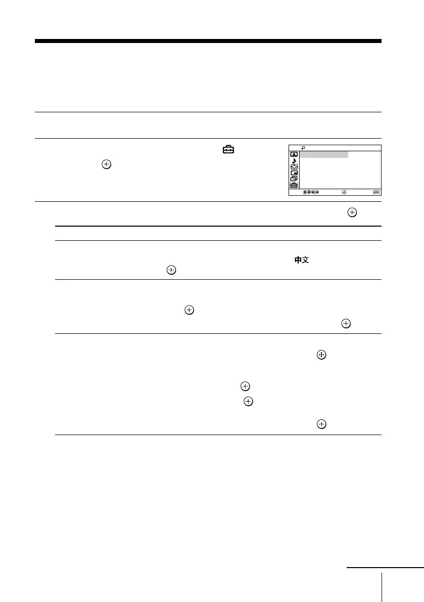 Press V or v to select the desired item (e.g., “Language”), then press .
