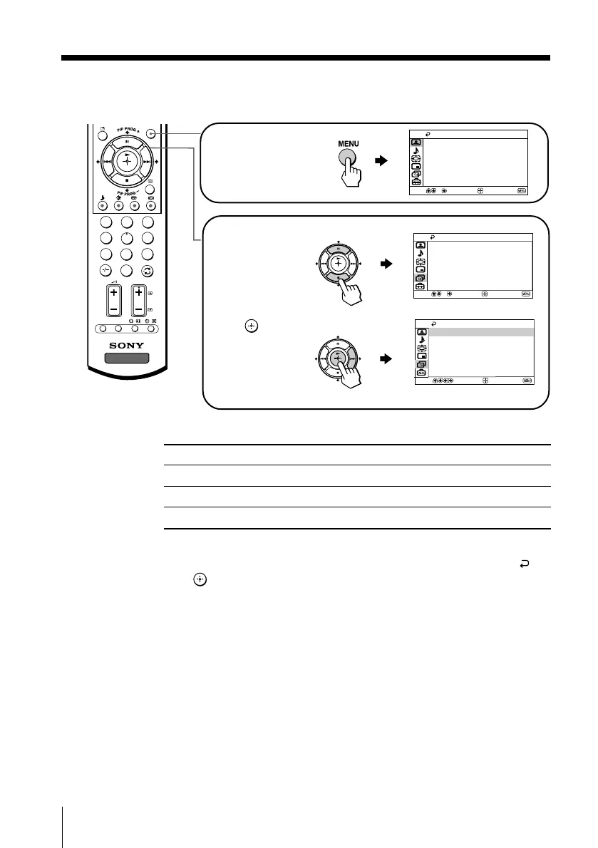 • The MENU, t and 2 +/– buttons on the TV front panel can also be used for the operations