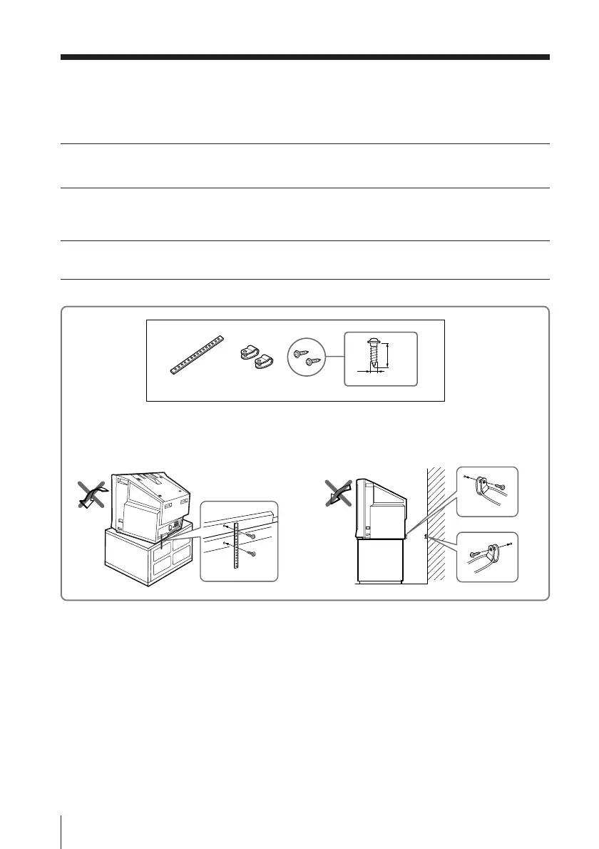 With the supplied screws, attach the band to the TV stand and to the rear of