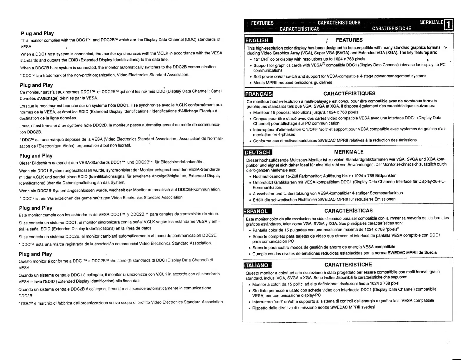 Sony Trinitron Multiscan 100sx - Plug and Play; VESA DDC Compatibility
