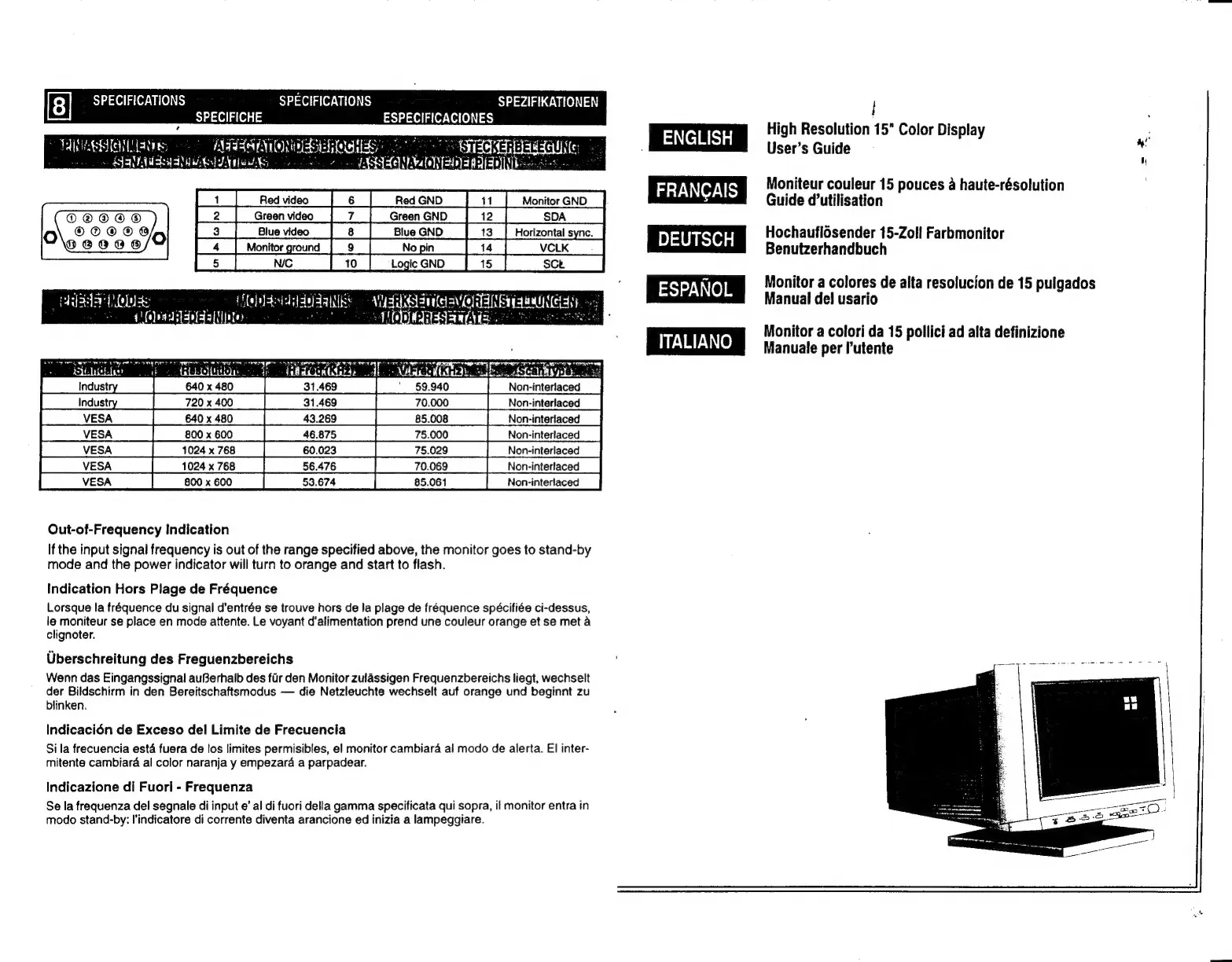 Sony Trinitron Multiscan 100sx - Signal Frequency Handling; Out-of-Frequency Indication
