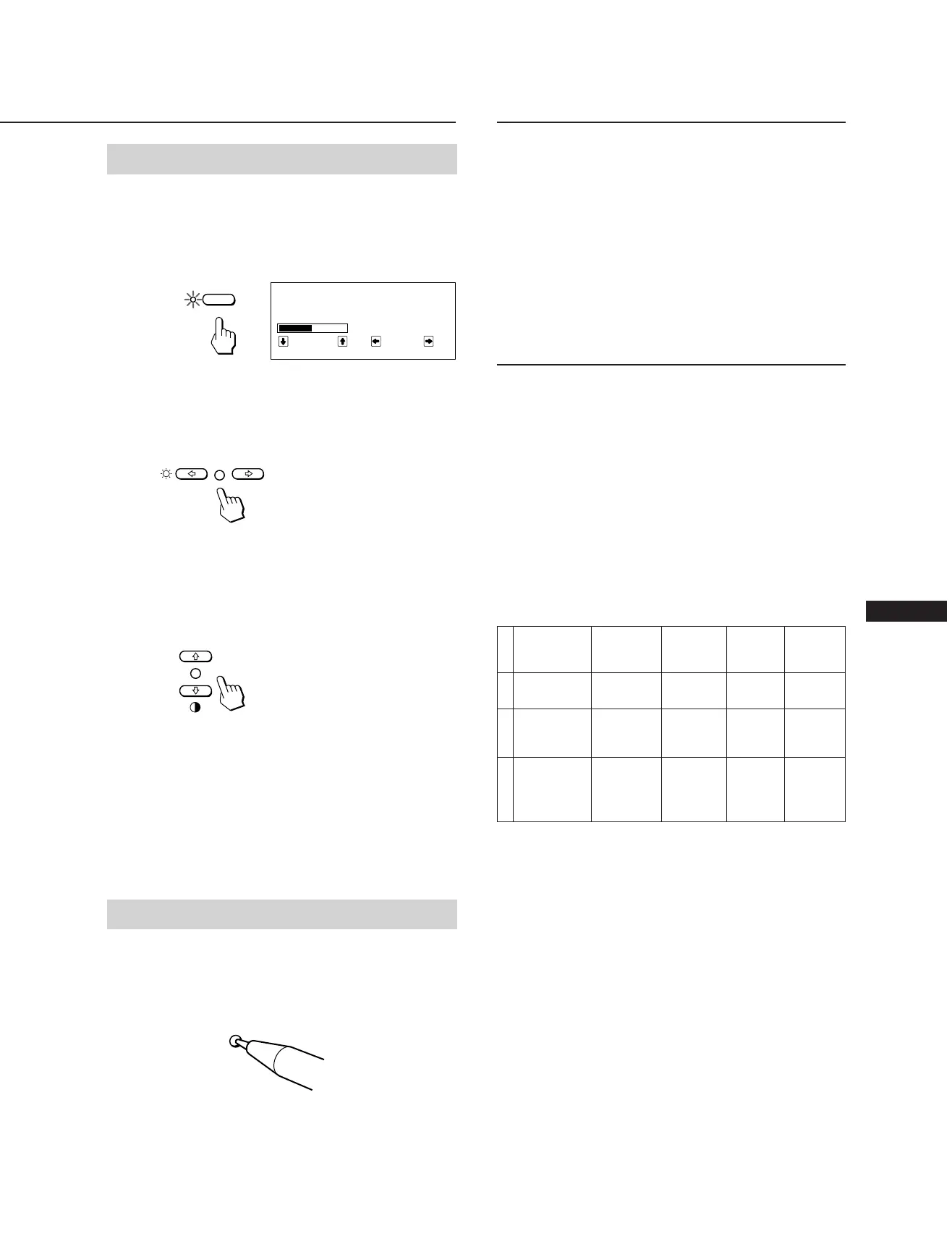 brightness, contrast, horizontal and vertical size, center