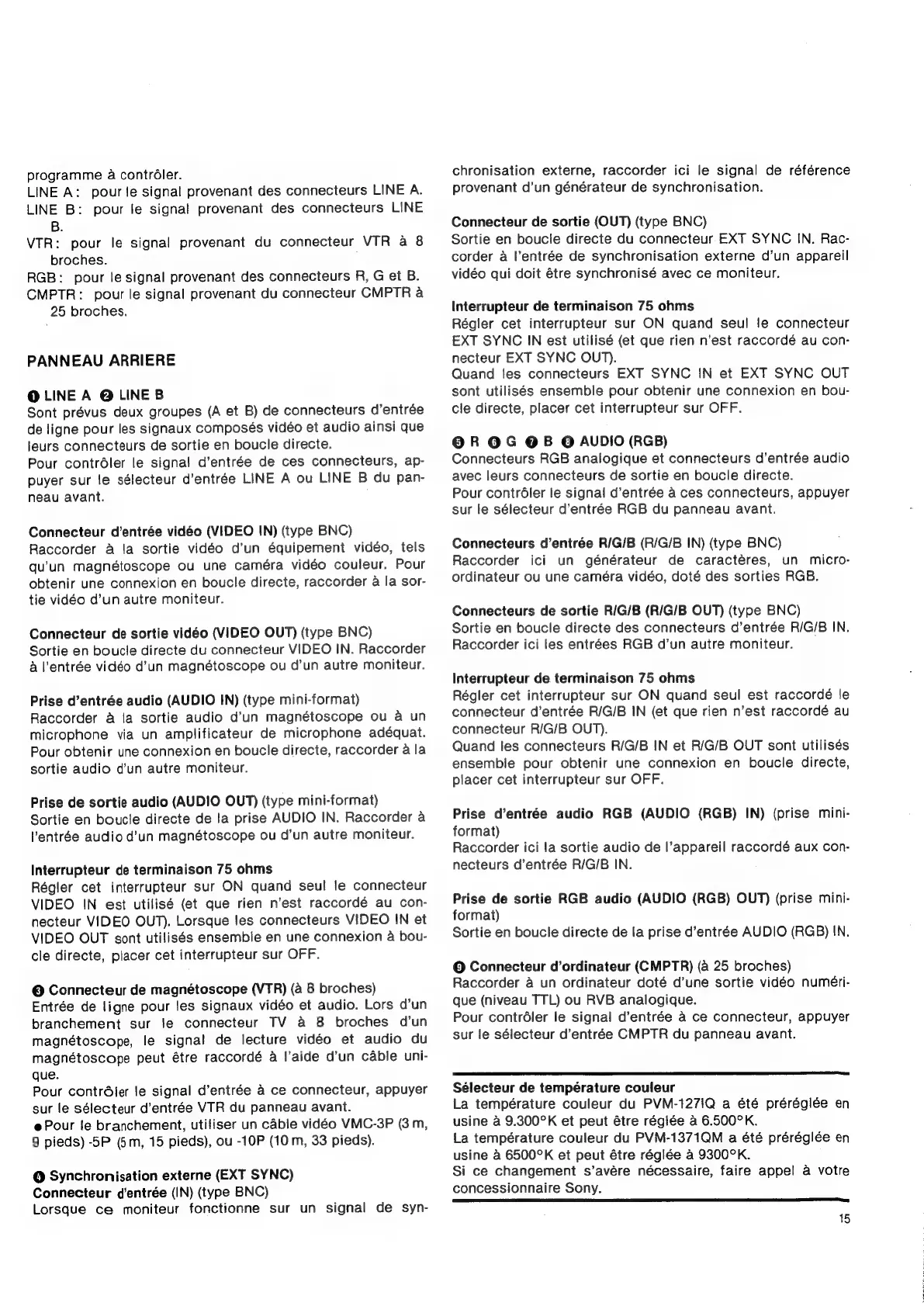 Sony Trinitron PVM-1271Q - Panneau Arriere