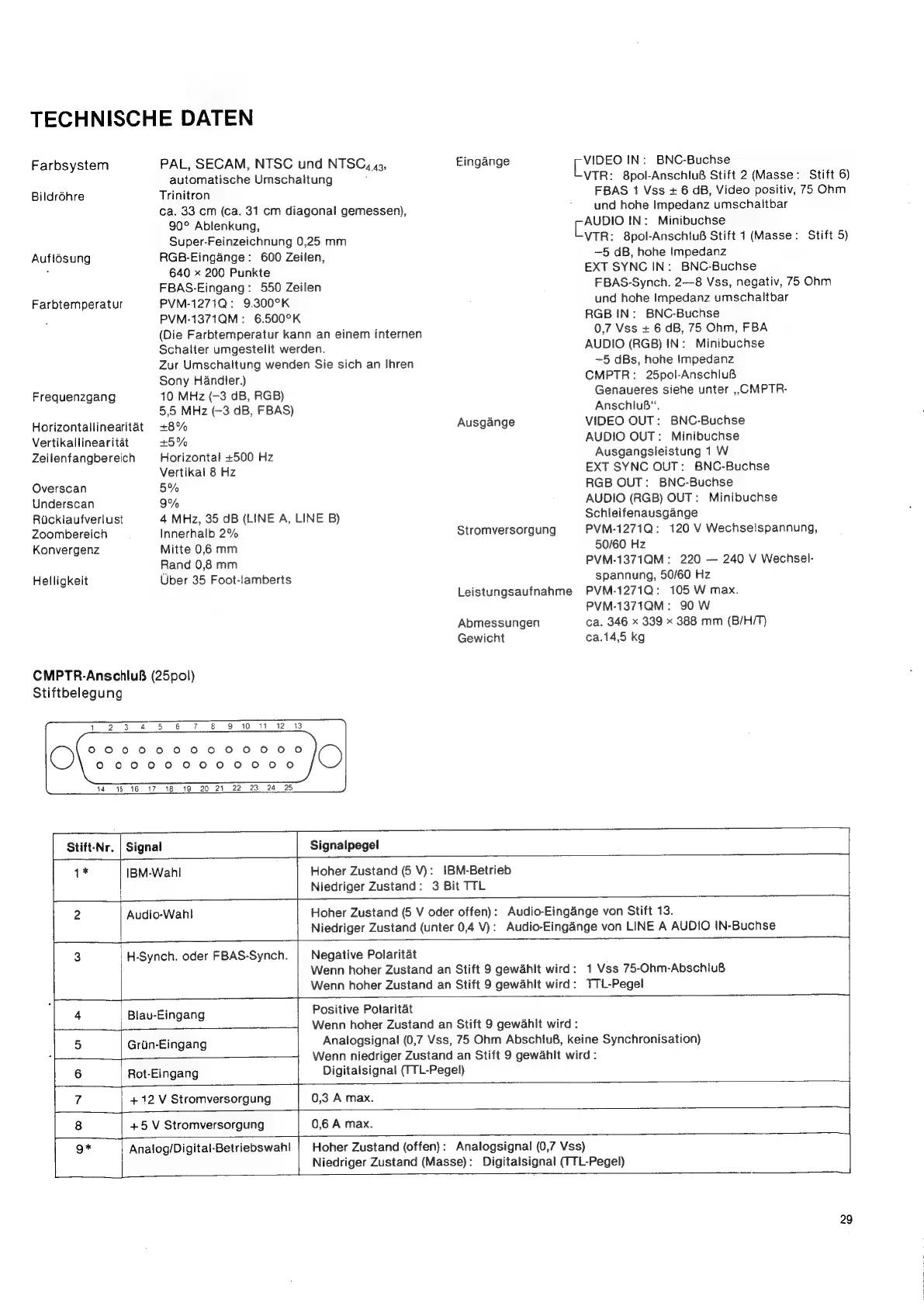 Sony Trinitron PVM-1271Q - Technische Daten