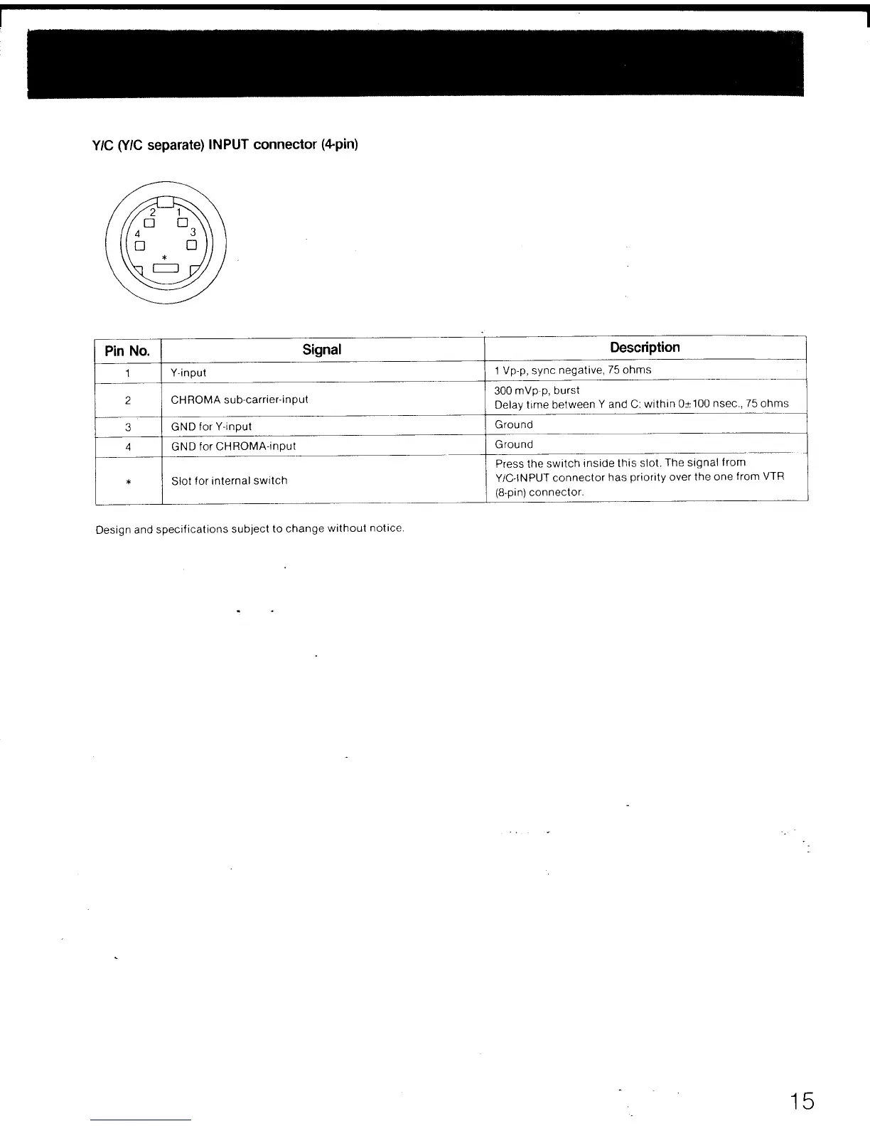 Sony Trinitron PVM-1341 - Y;C (Y;C Separate) Input Connector (4-Pin)
