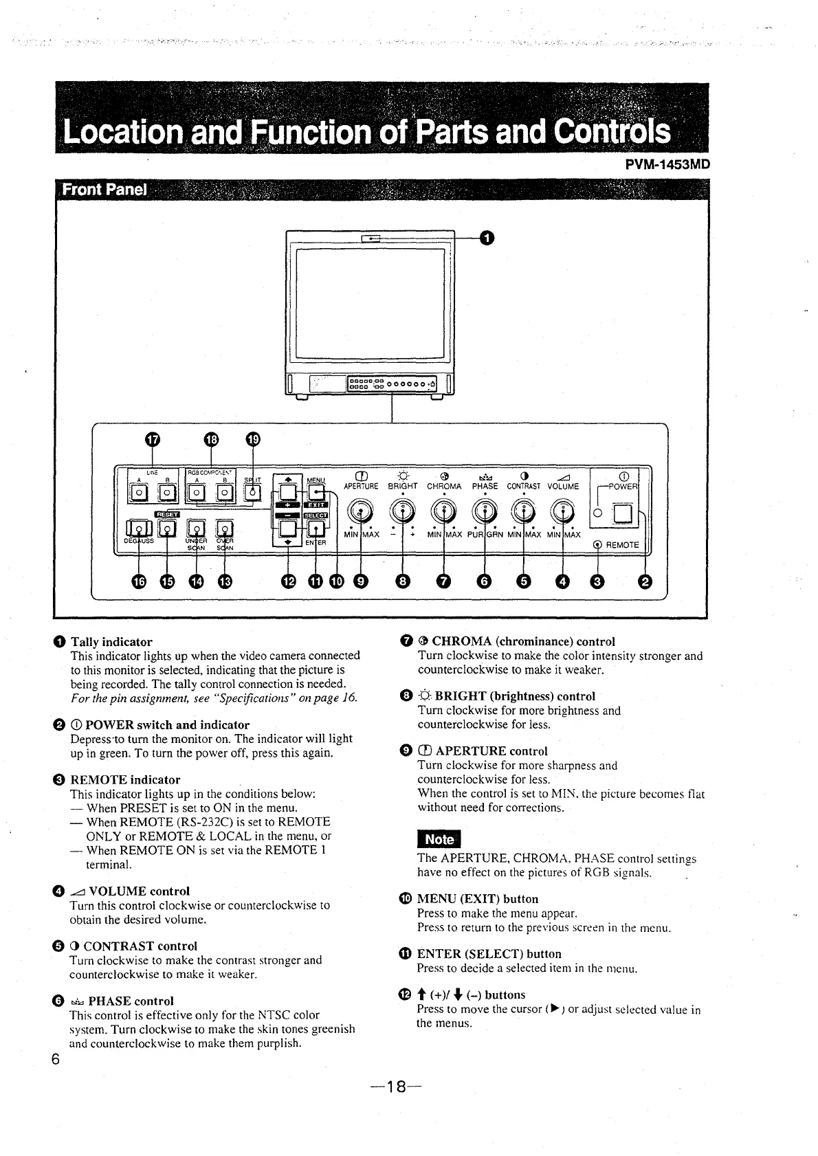 The APERTURE, CHROMA. PHASE control settirnis