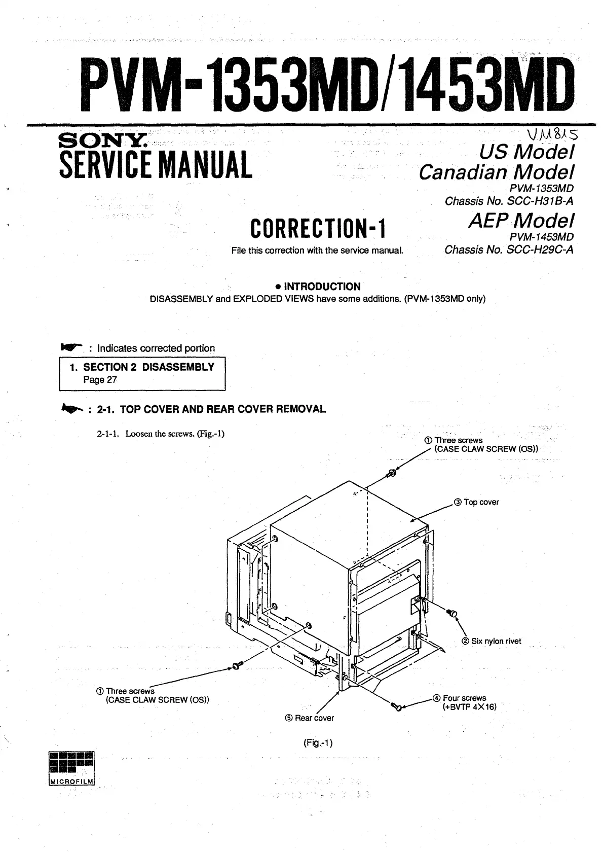 DISASSEMBLY and EXPLODED VIEWS have some additions. (PVM-1353MD only)