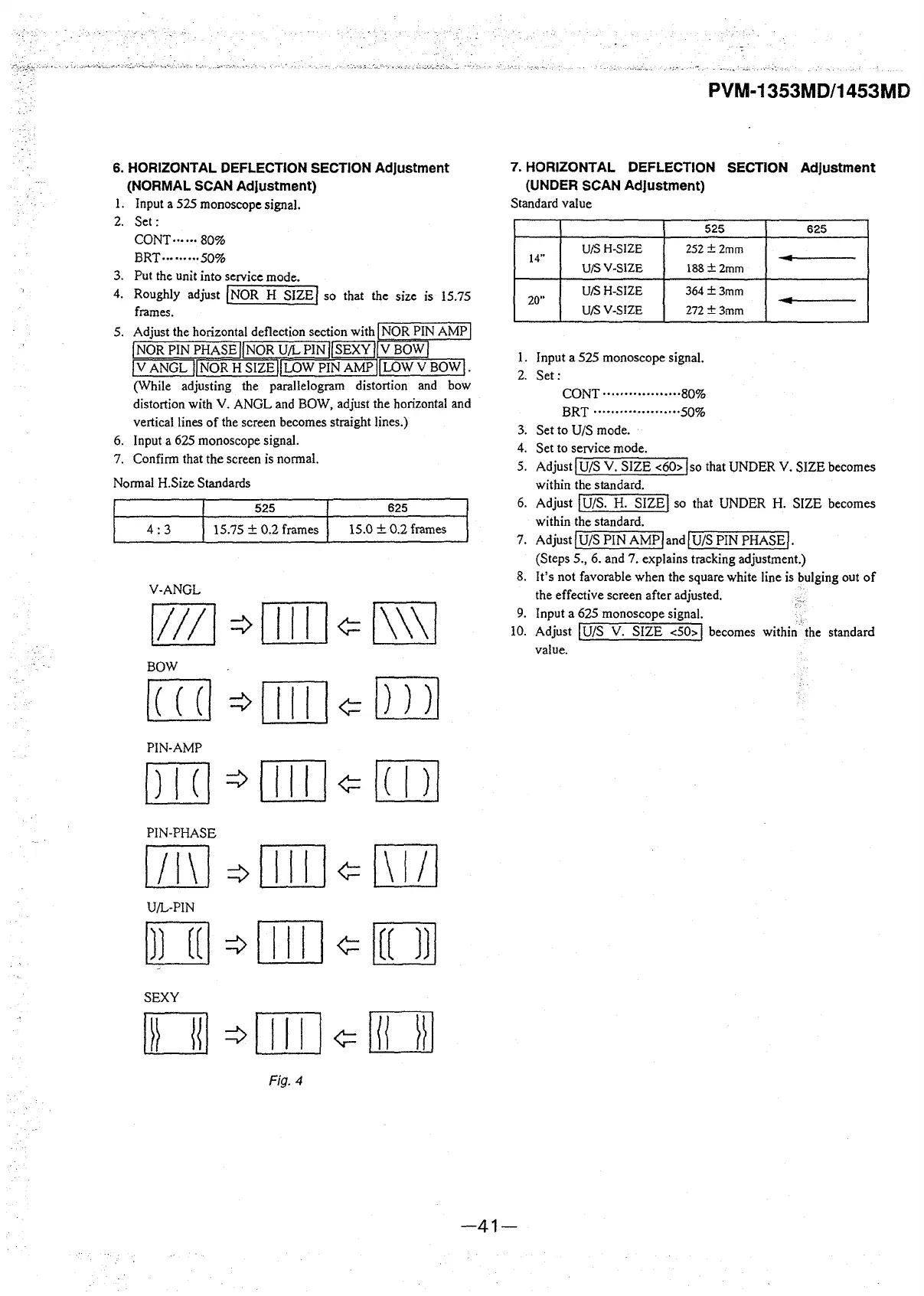 distortion with V. ANGL and BOW, adjust the horizontal and