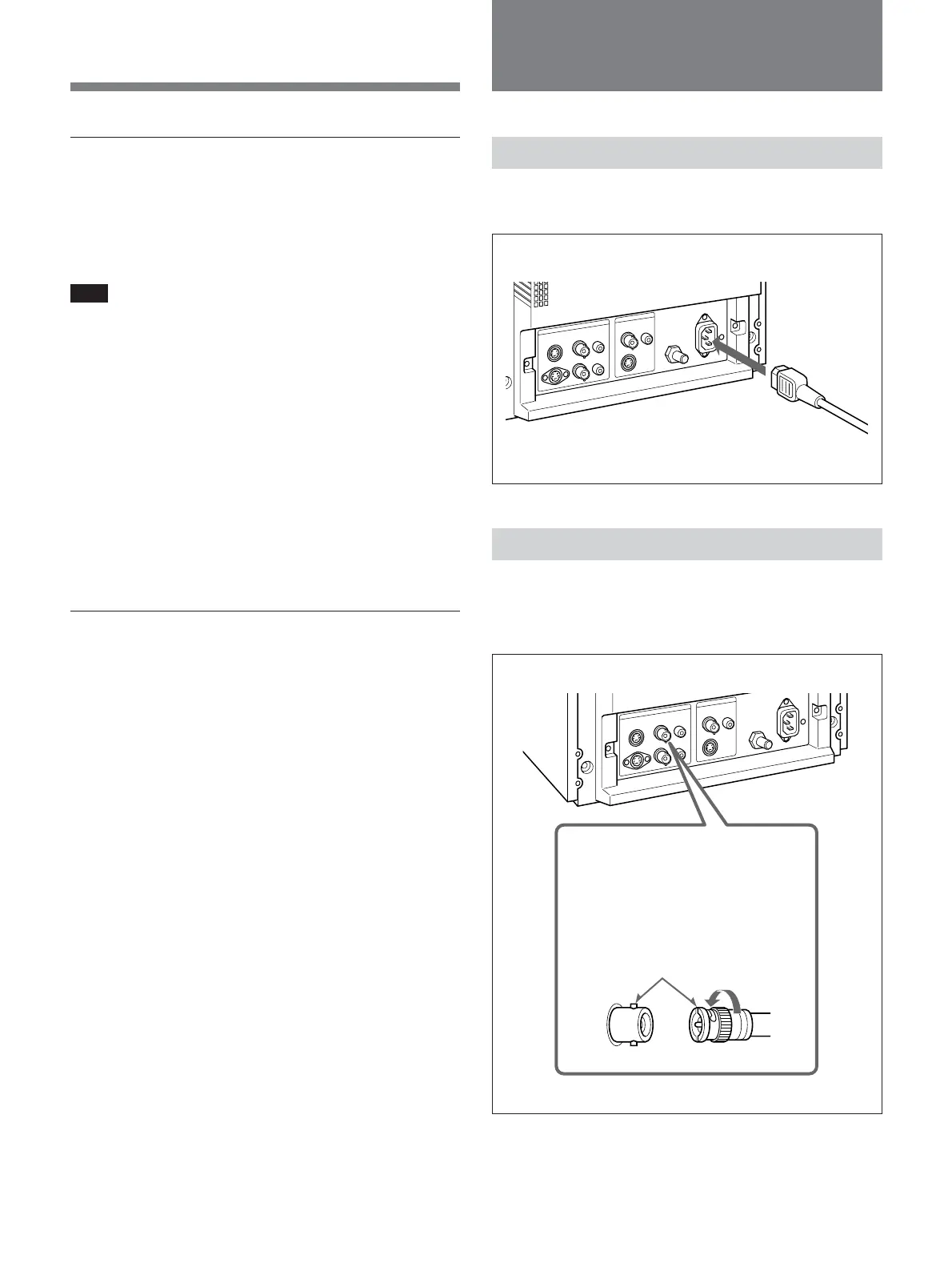Sony Trinitron PVM-14L1MDE - 如何将电缆连接至 Bnc 连接器; 如何连接交流电源线; 连接
