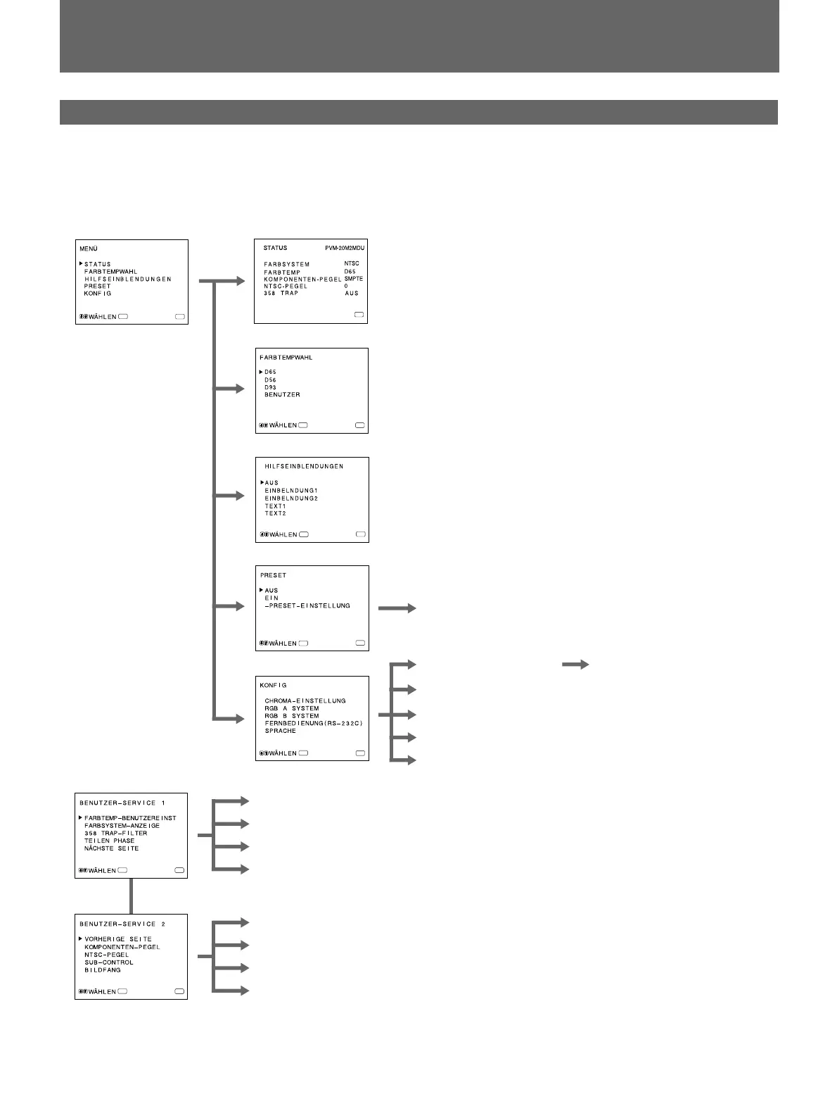 1) HILFSEINBLENDUNGEN im Hauptmenü steht ausschließlich bei den Modellen PVM-20M2MDU und 14M2MDU zur