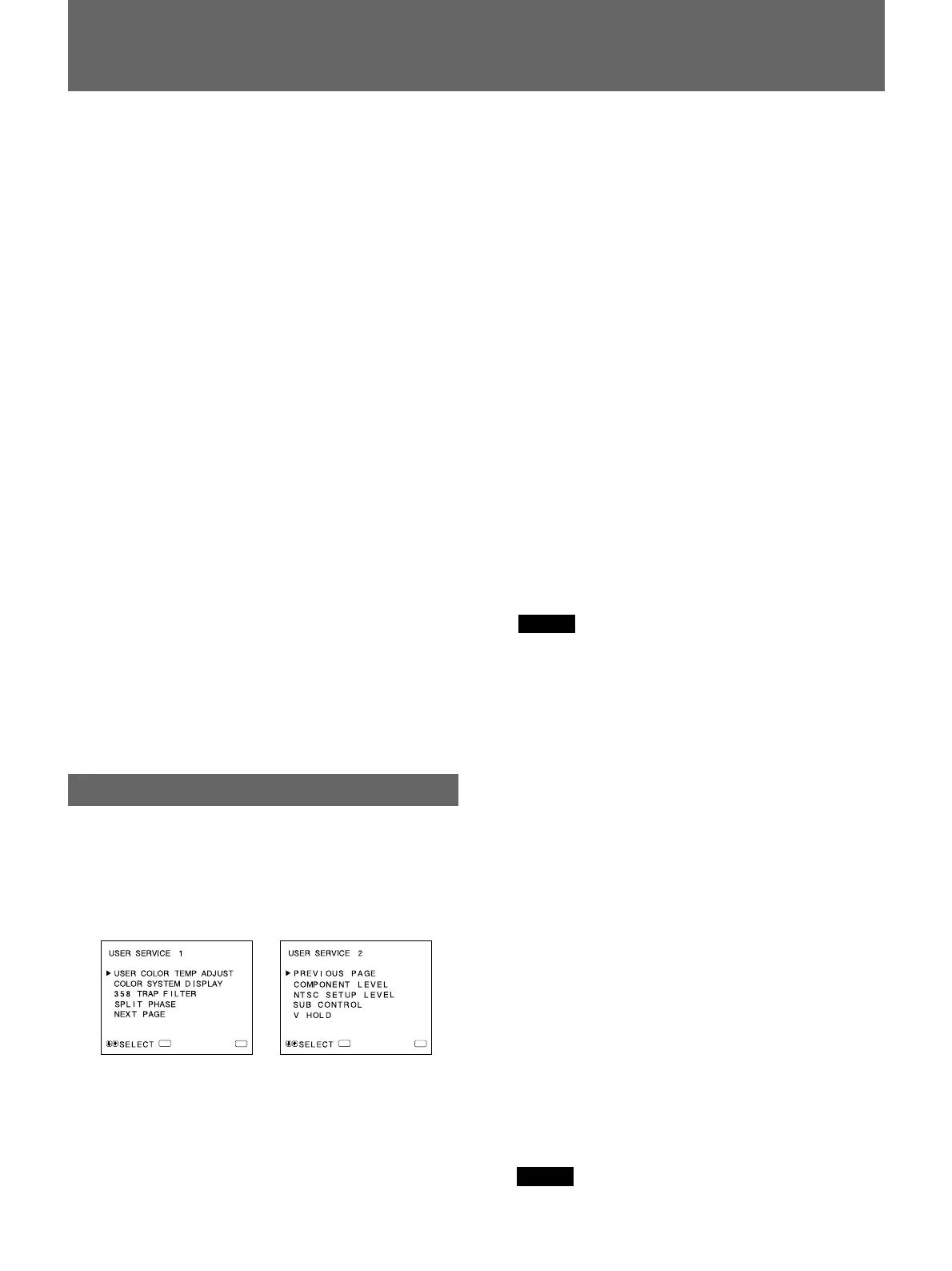 USERSERVICEモードの2ページ目に移るにはNEXTPAGEを、