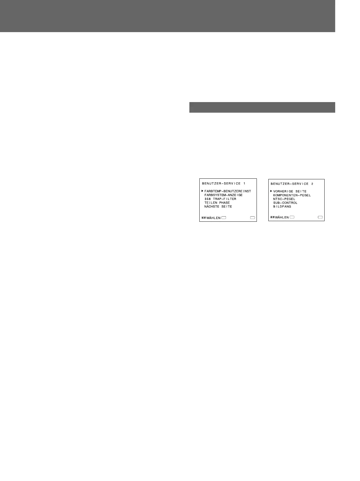 Der Benutzer-Servicemodus dient zum Anpassen der