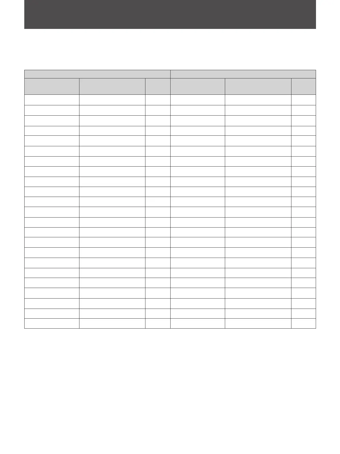 All values in the following table are hexadecimal.