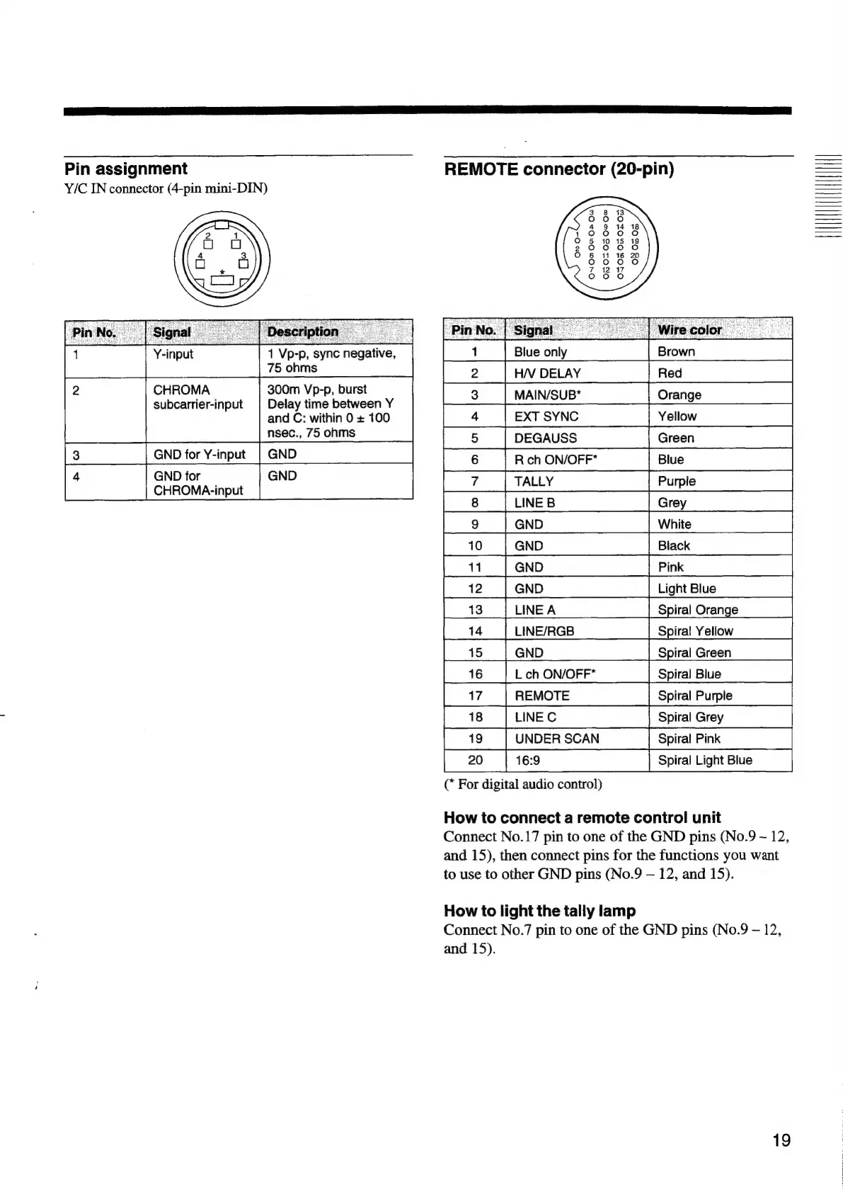 Sony Trinitron PVM-14M2U - Pin Assignment