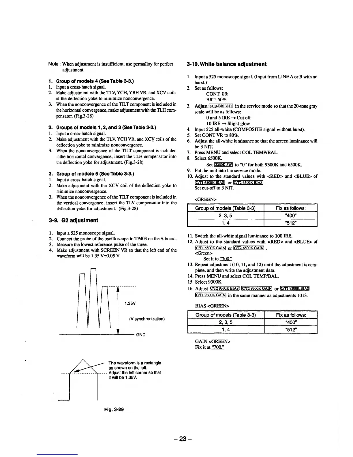 3. Adjust !SUB-BRIGHT! in the service mode so that the 20-tone gray
