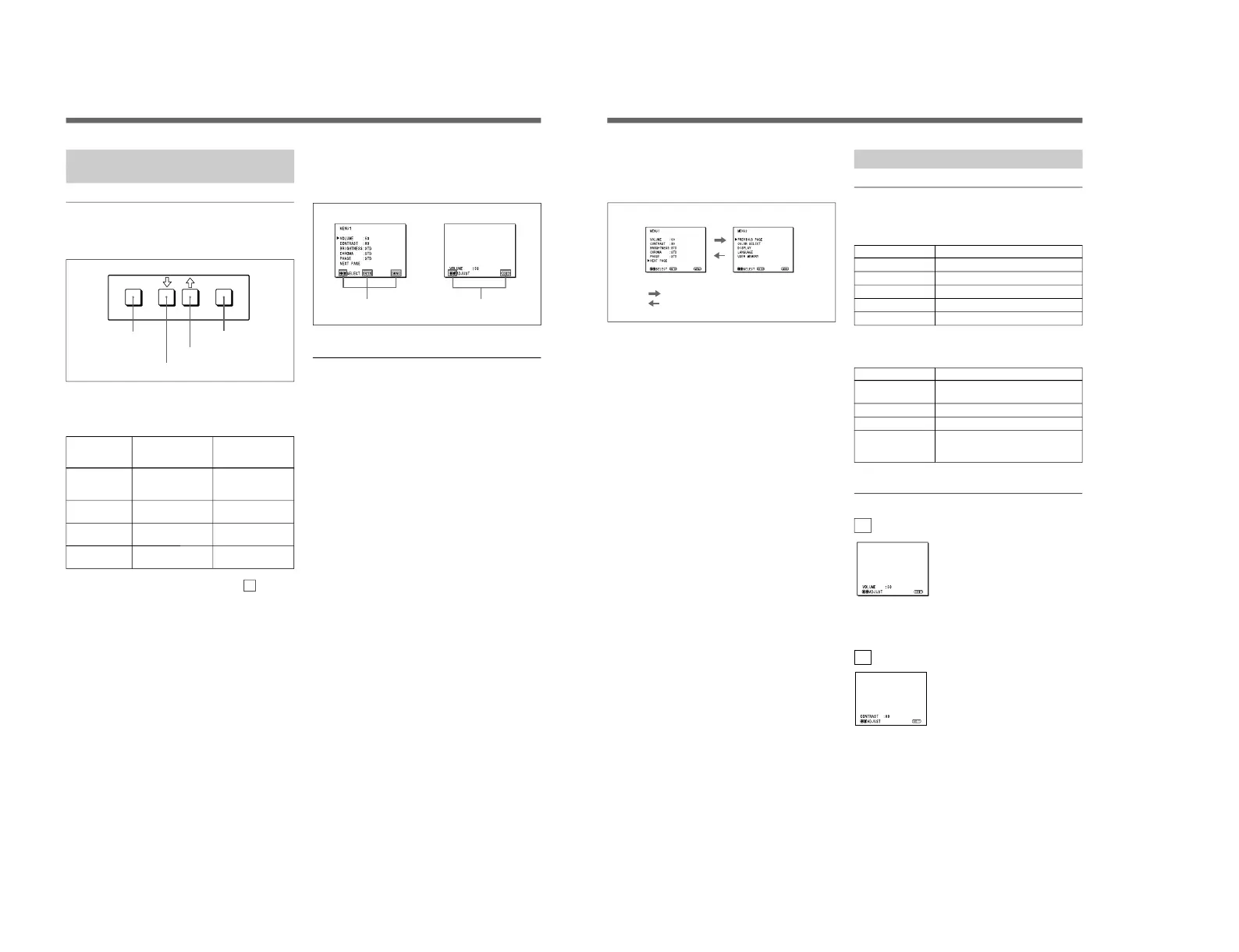 selection menus and adjustment and setting menus.