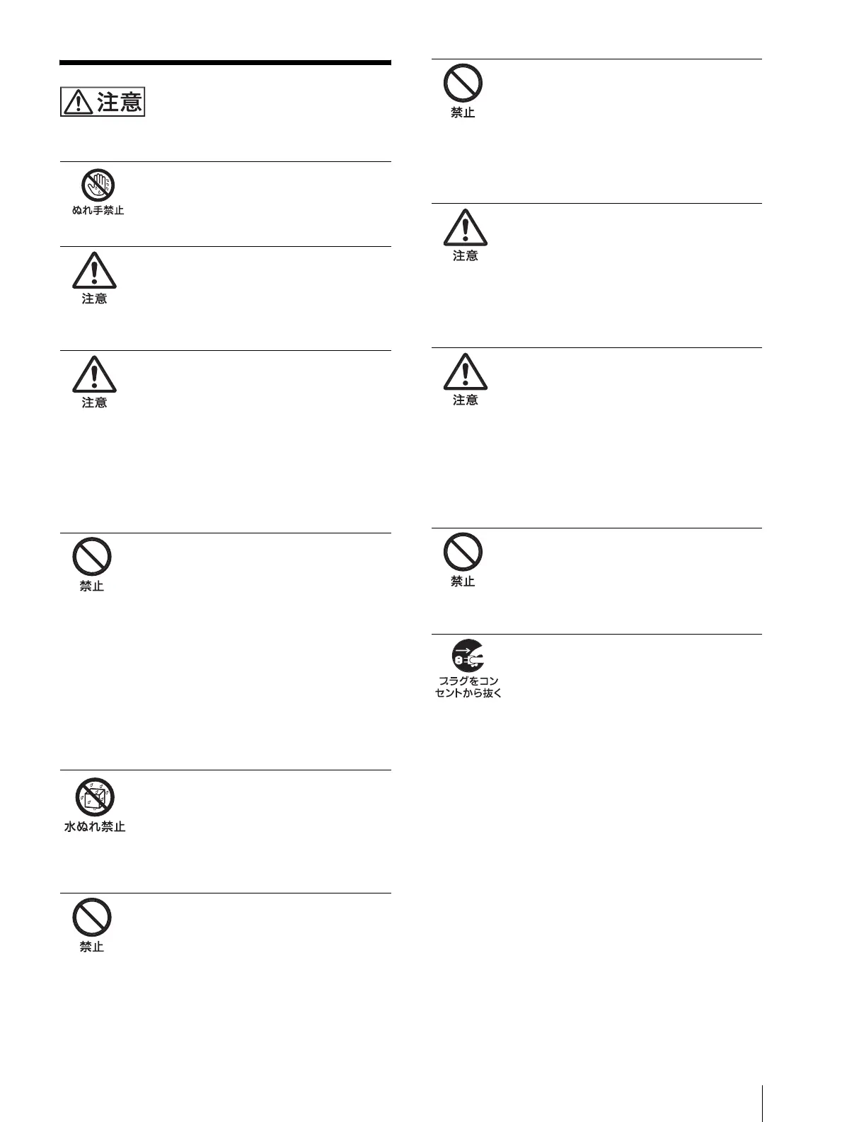ぬれた手で電源プラグをさわらない
