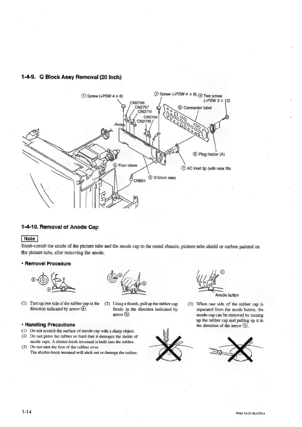 Sony Trinitron PVM-20L4 - Q Block Assy Removal (20 Inch); Removal of Anode Cap
