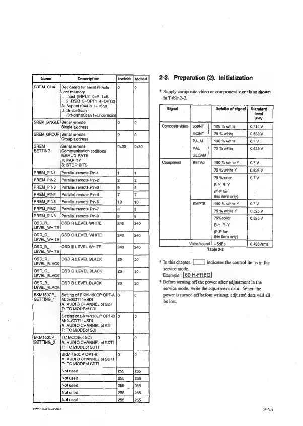 Sony Trinitron PVM-20L4 - Preparation (2). Initialization