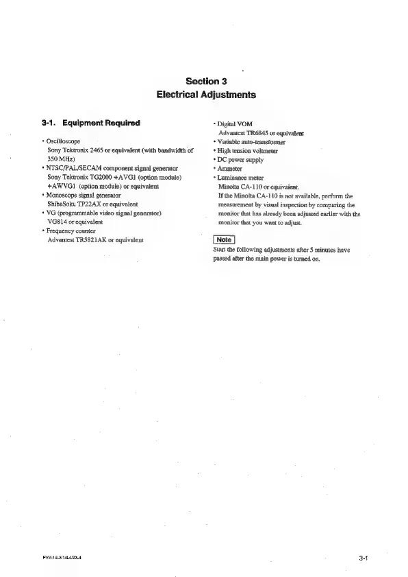 Sony Trinitron PVM-20L4 - Electrical Adjustments; Equipment Required