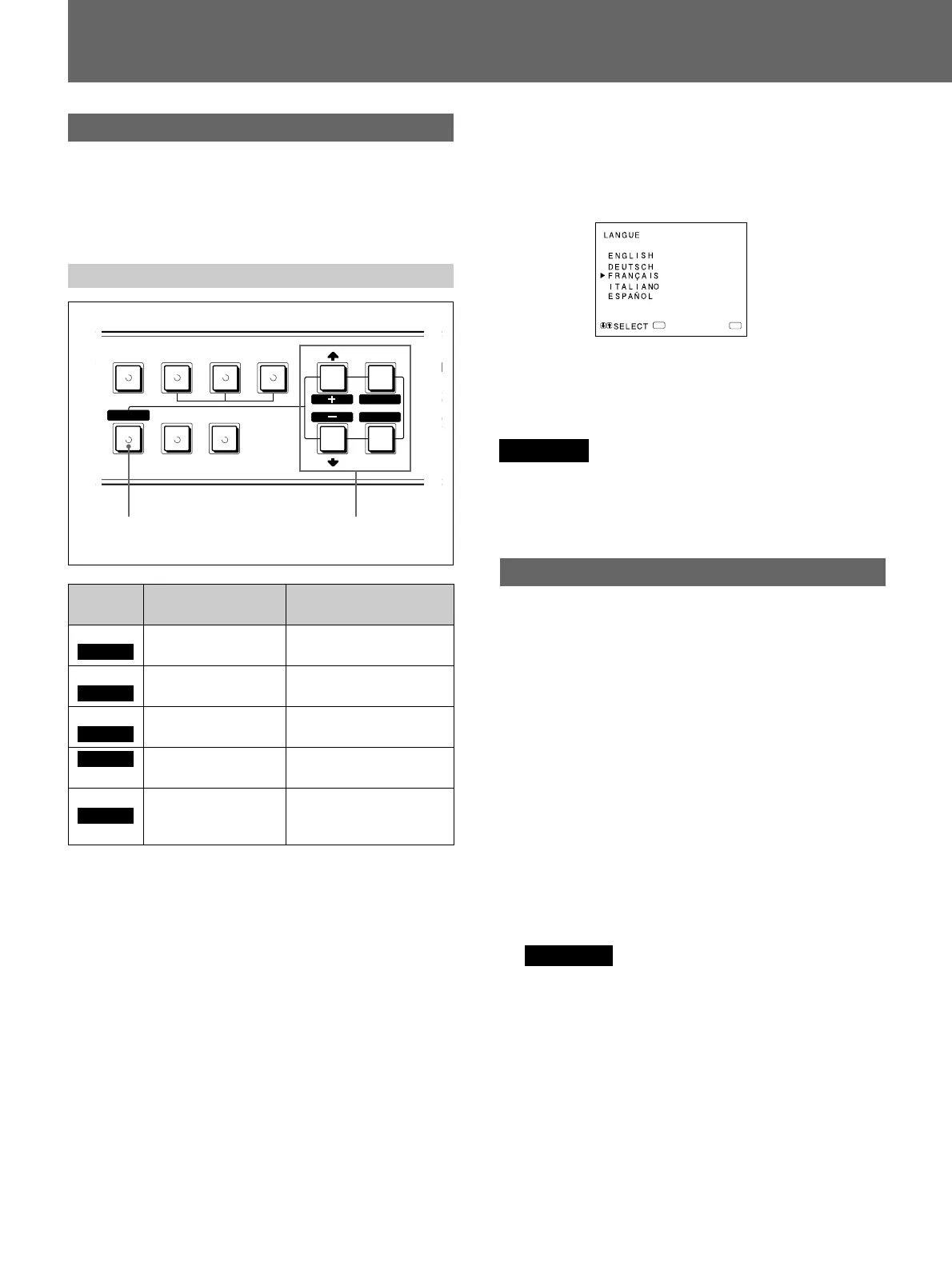 menu LANGUE (!™) apparaît à l’écran. Sélectionnez alors