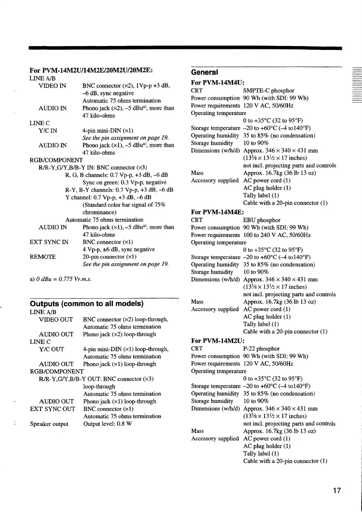 PVM-14M2U/14M2E/20M2U/20M2E: