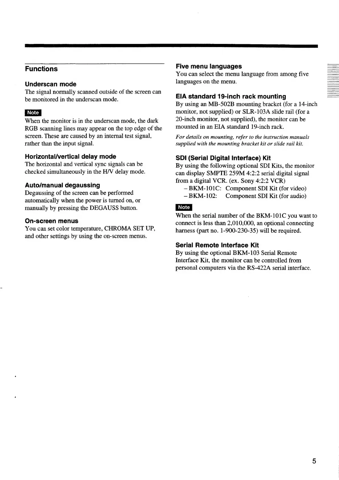 Sony Trinitron PVM-20M4U - Functions; Monitor Modes and Adjustments