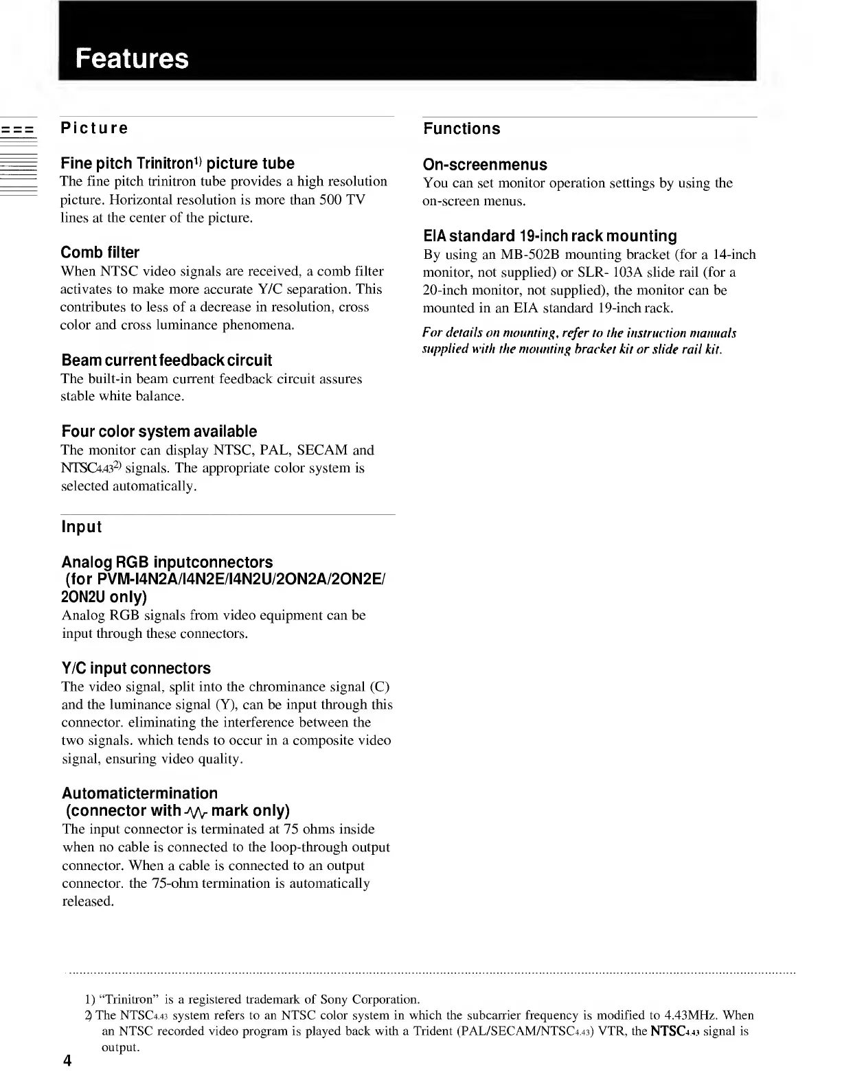Sony TRINITRON PVM-20N1E - Features