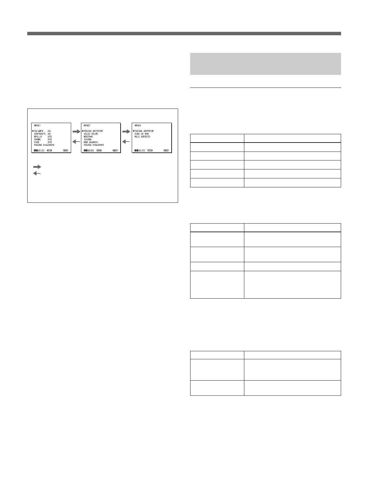 Para cambiar de menú de selección de