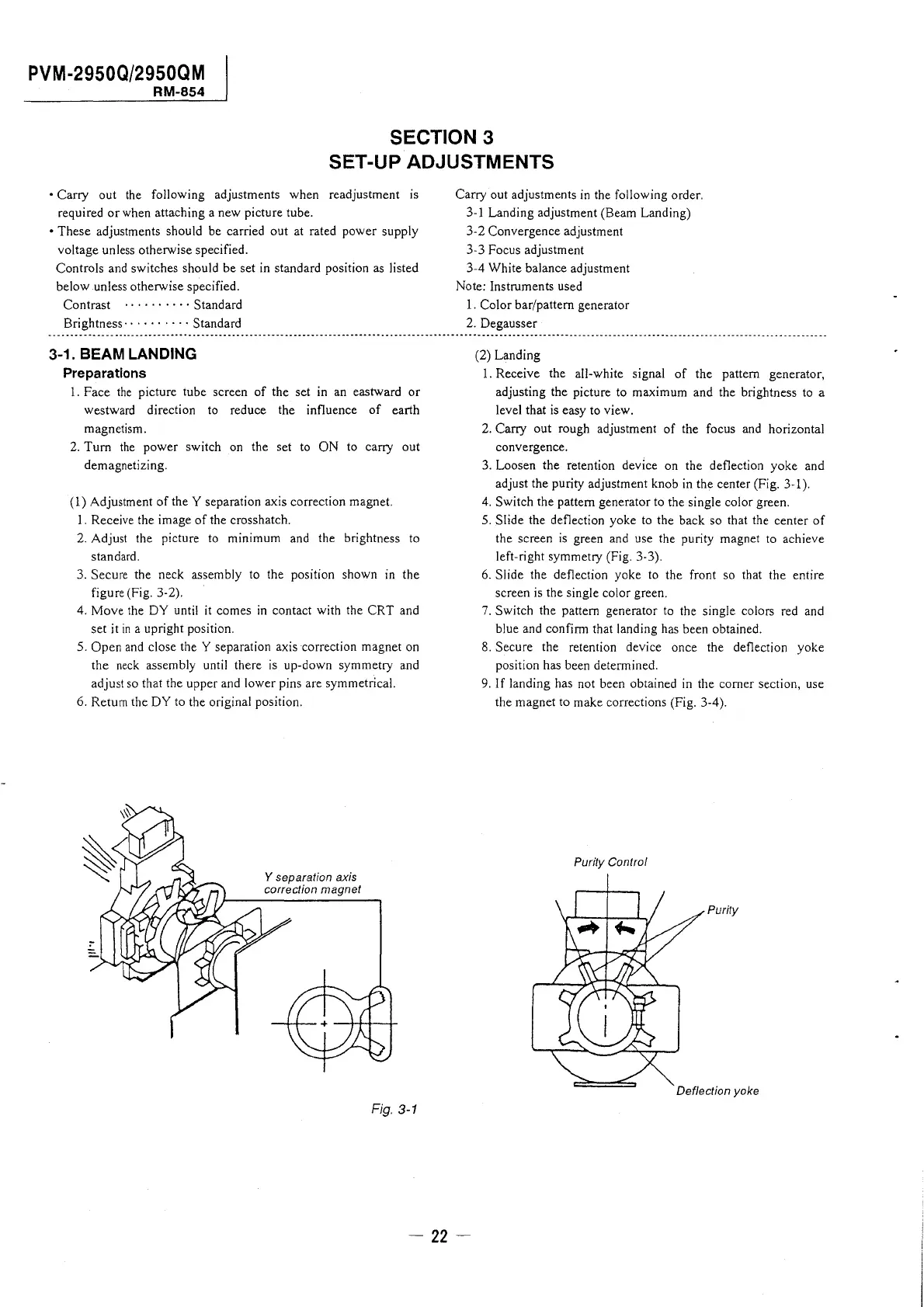( 1) Adjustment of the Y separation axis correction magnet.