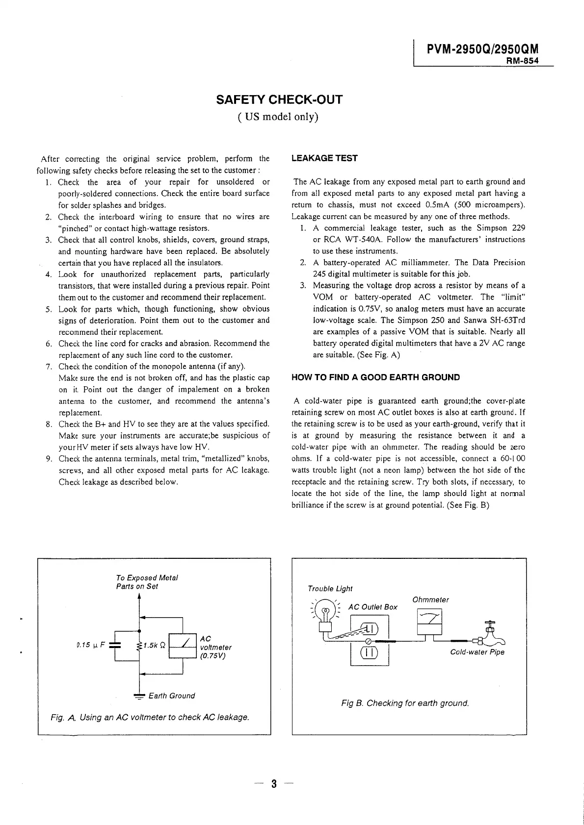 Fig. A Using an AC voltmeter to check AC leakage.