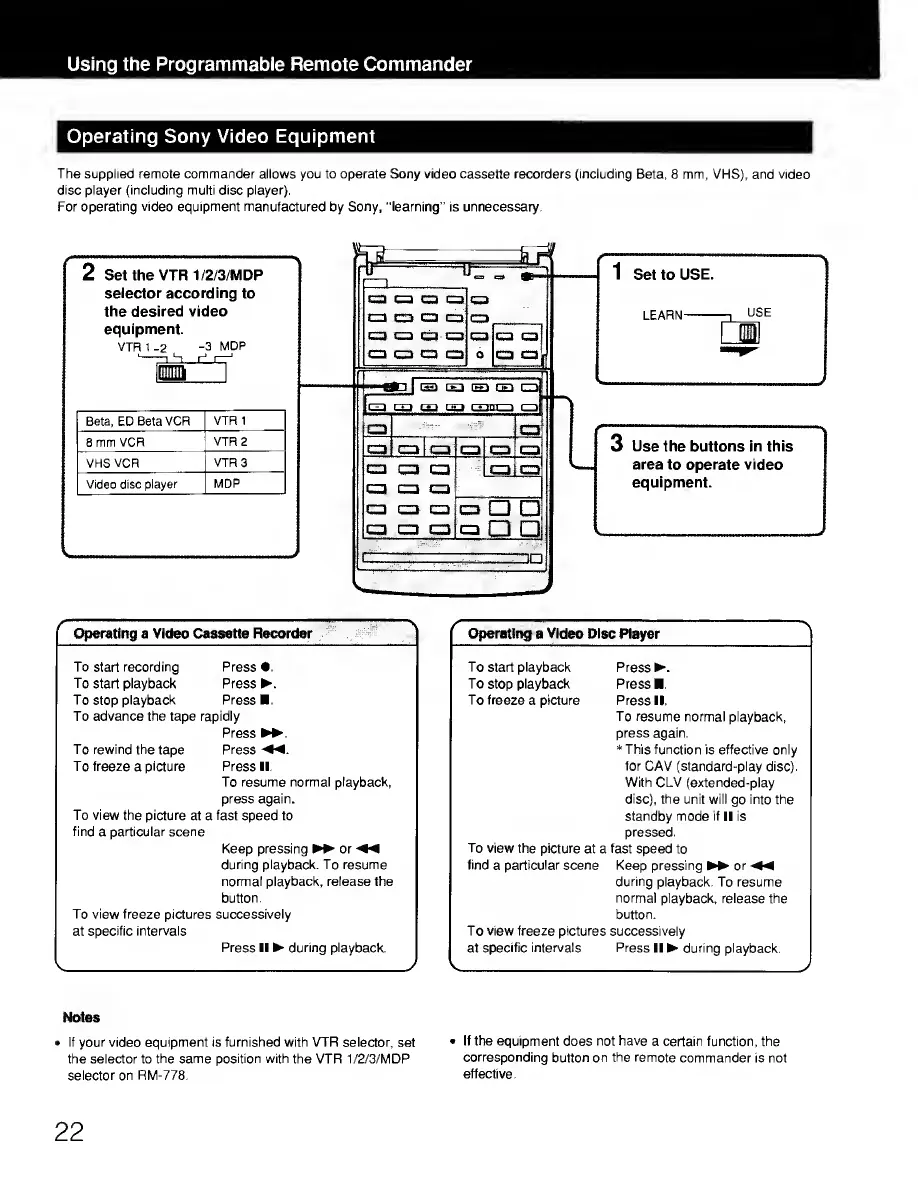 The supplied remote commander allows you to operate Sony video cassette recorders (including