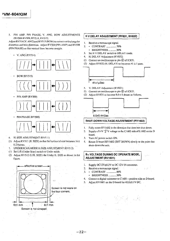 distortion and bow distortion. Adjust RY509 (PIN AMP) and RV508