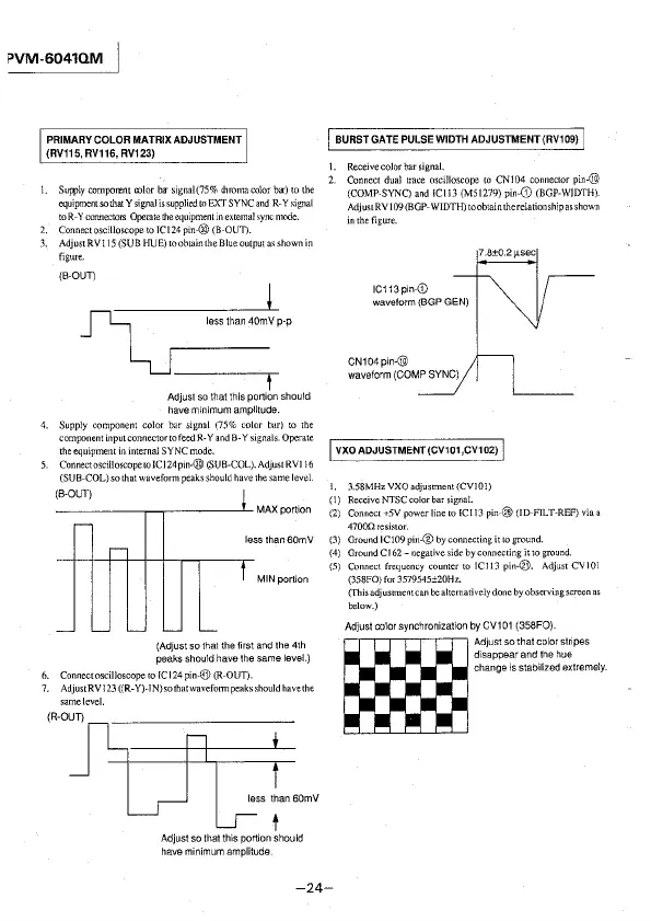 7. AdjustRVl 23 ((R-Y)-IN) so that wavefotn1 peaks should have the