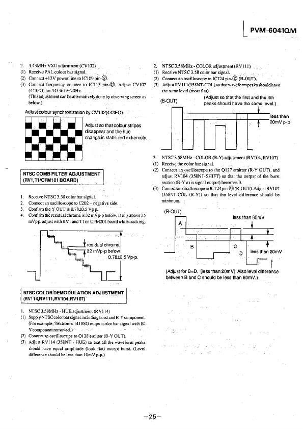 3. NTSC 3.58MHz - COLOR (R-Y) adjustment (RV104, RVl07)