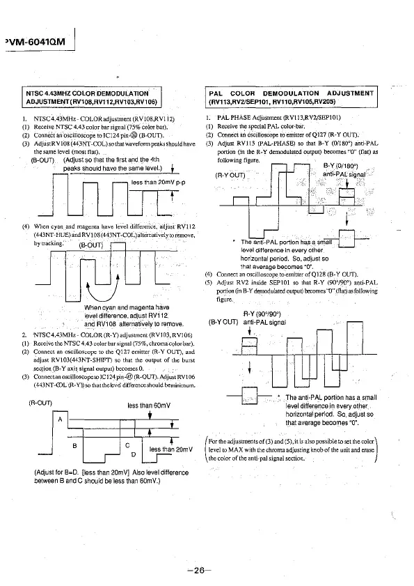 2. NTSC 4.43MHz- COLOR (R-Y) adjustment (RV103, RV106)