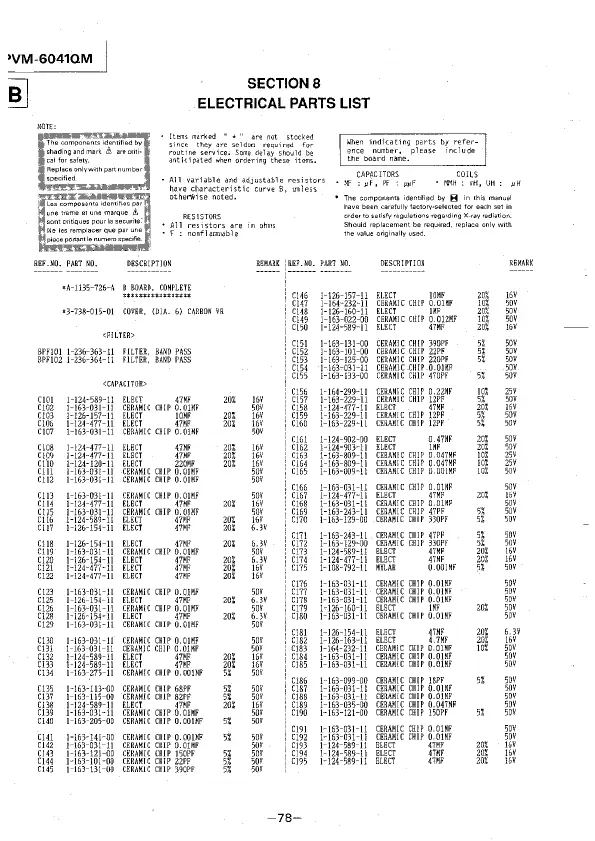 ELECTRICAL PARTS LIST