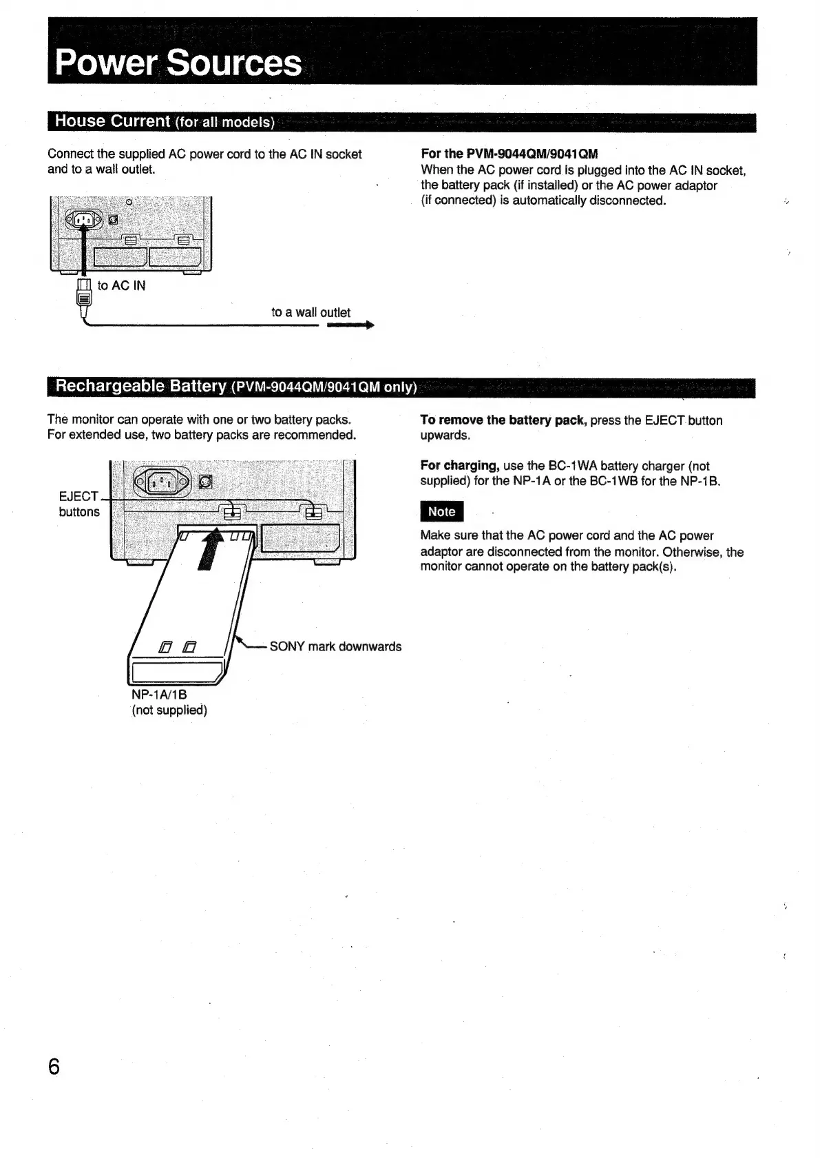 Sony Trinitron PVM-9041QM - Power Sources; House Current; Rechargeable Battery