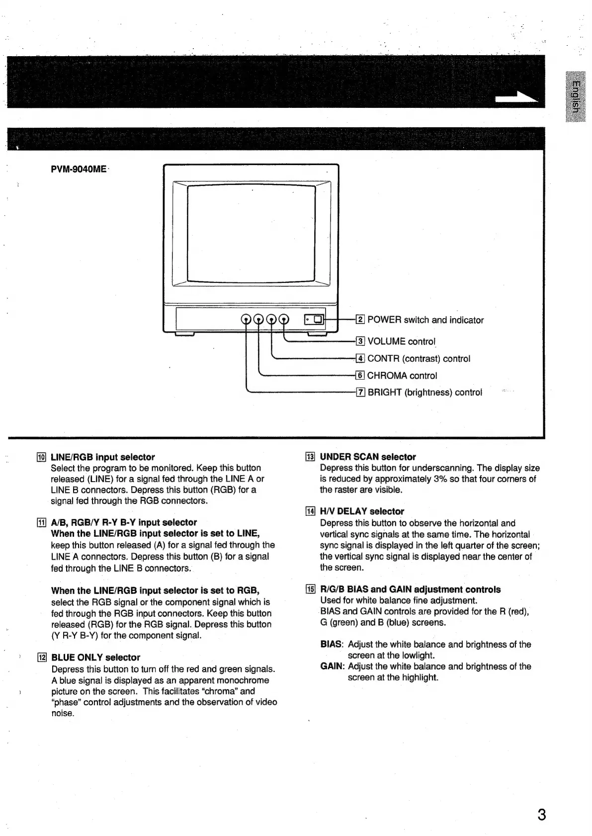 Sony Trinitron PVM-9044QM - Front Panel Controls (PVM-9040 ME); Input Selectors; Picture and Scan Controls; White Balance Controls