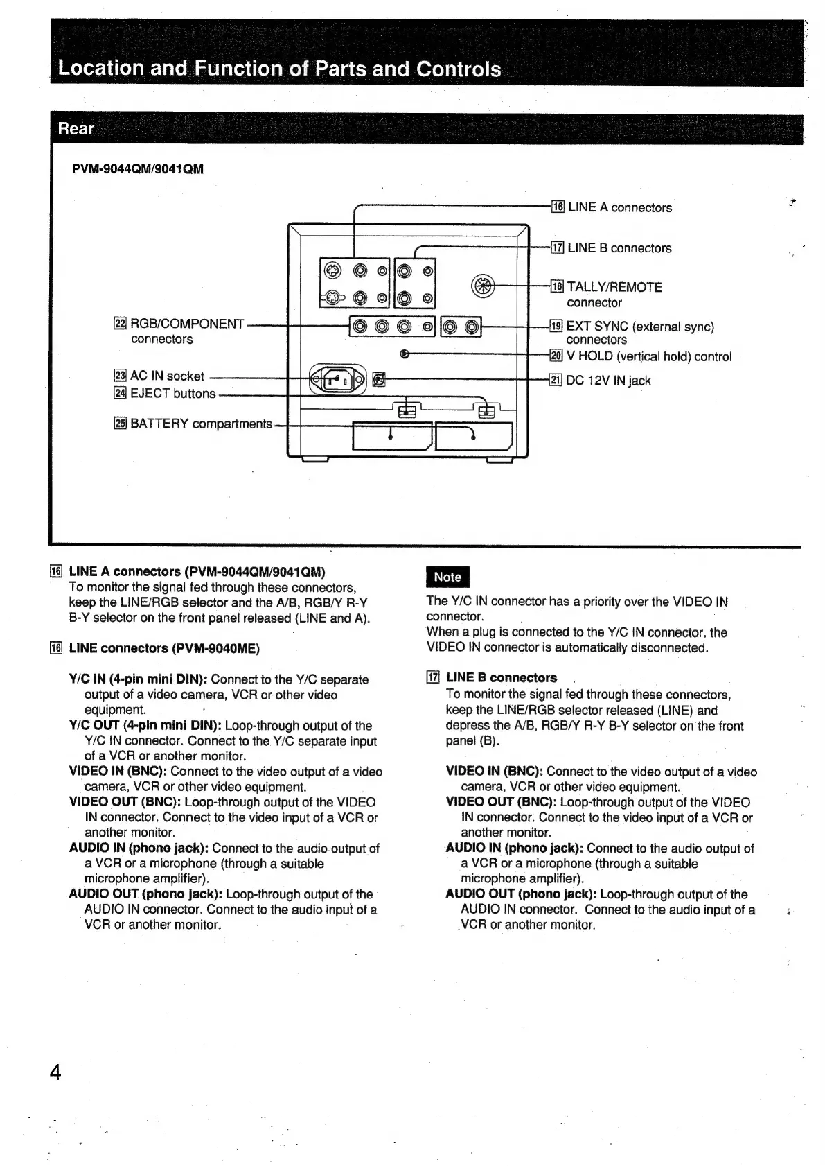 Sony Trinitron PVM-9044QM - Rear Panel Connectors (PVM-9044 QM;9041 QM); LINE A and LINE B Connectors; Other Rear Connectors