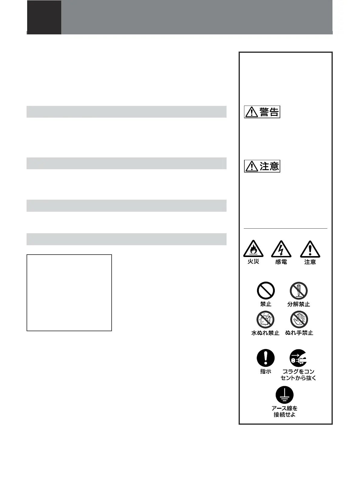 ちがった使いかたをすると、火災や感電などにより死亡や大けがなど人身事故に