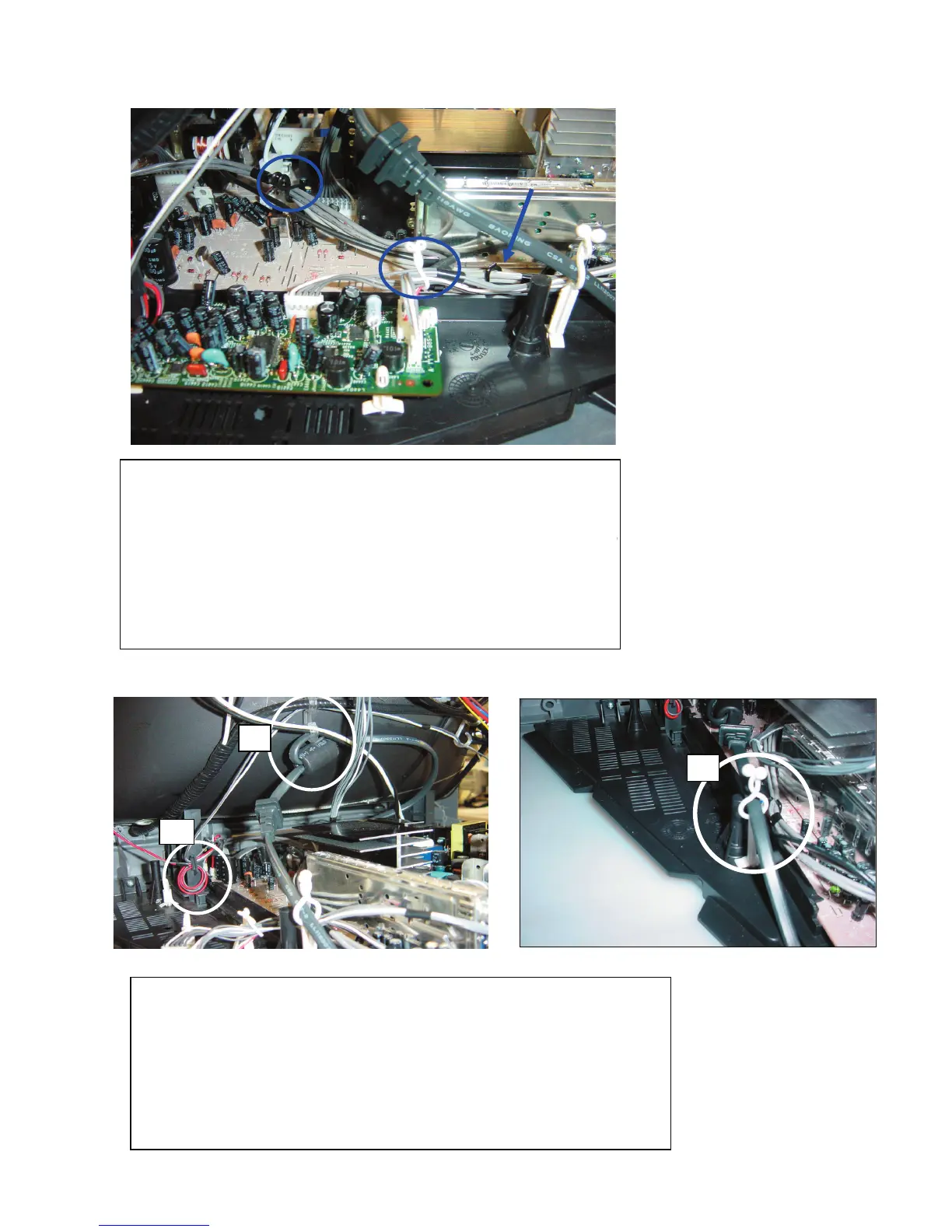 1.- Dress Left and right speaker wire into CRT support, red wire with two
