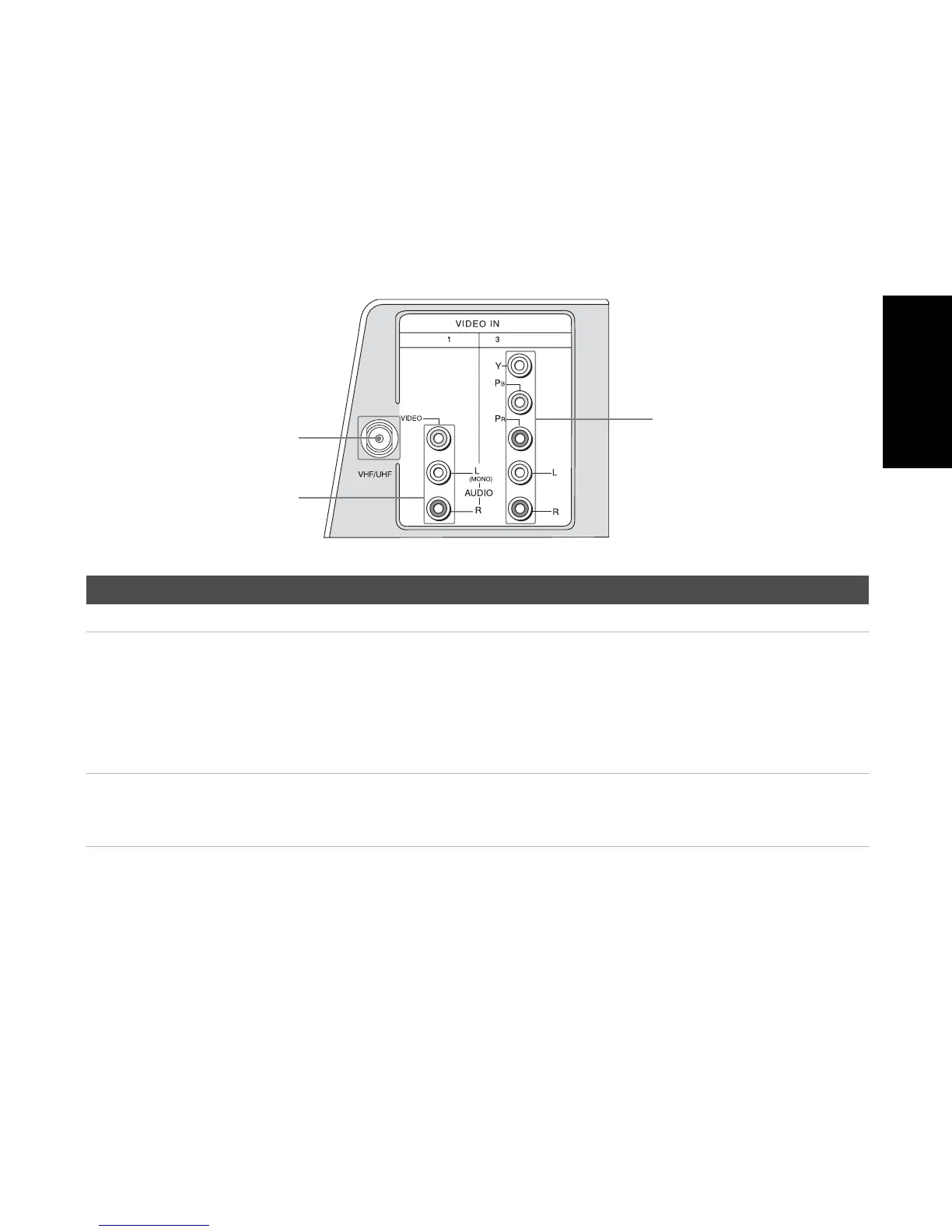 3 YPBPR/L, R Se conecta a las tomas de entrada de video para componentes